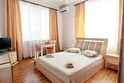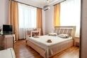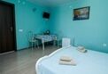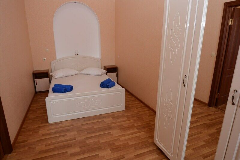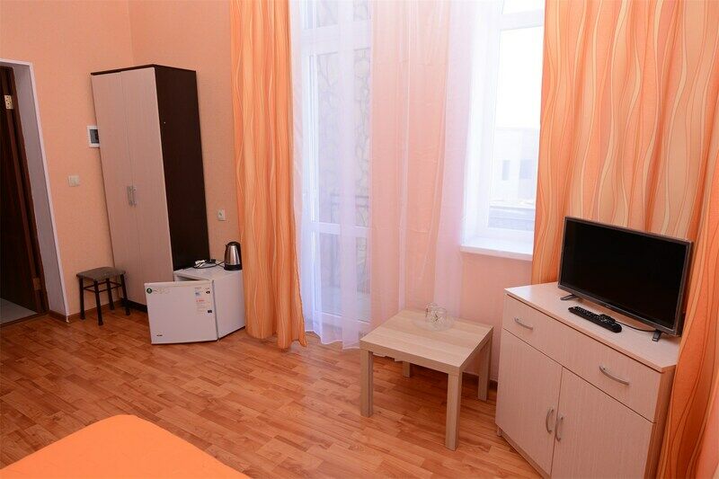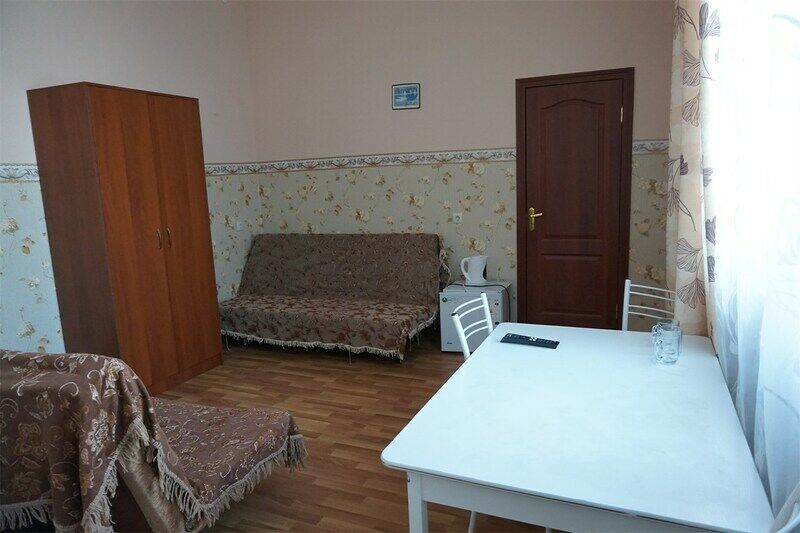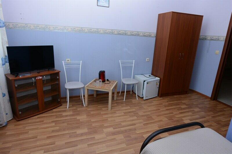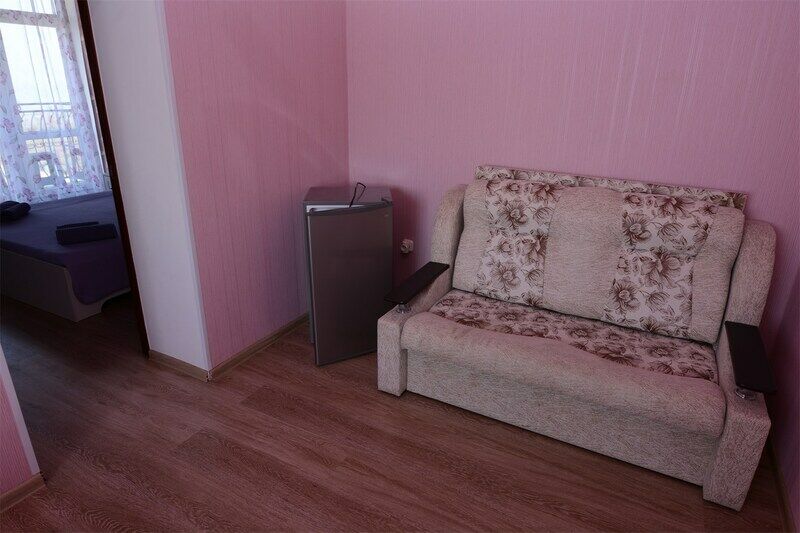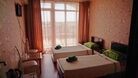 Сам гостевой дом представляет из себя трехэтажное здание, которое разместилось на первой береговой линии всего в 50 метрах от побережья. В распоряжении гостей однокомнатные и двухкомнатные номера с удобствами. Везде есть индивидуальный душ, санузел, установлена сплит-система, имеется бытовая техника – электрочайник, телевизор, фен, холодильник. Из окон некоторых комнат открывается вид на морской горизонт.