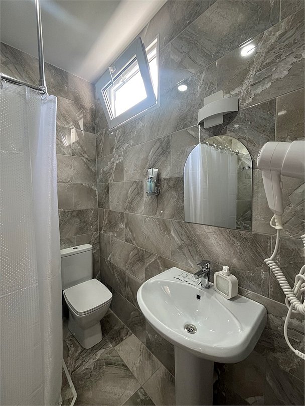В 400 метрах от отеля находится благоустроенный галечный пляж.