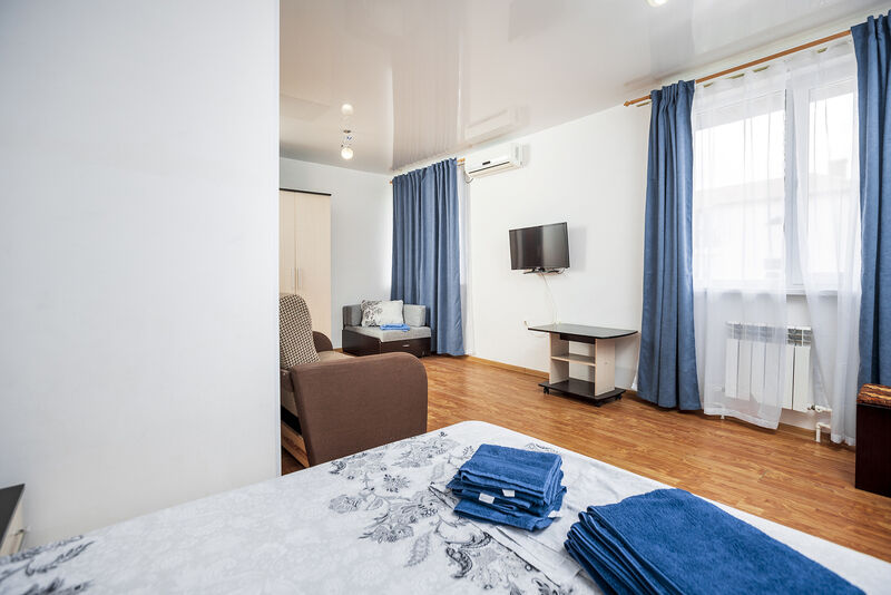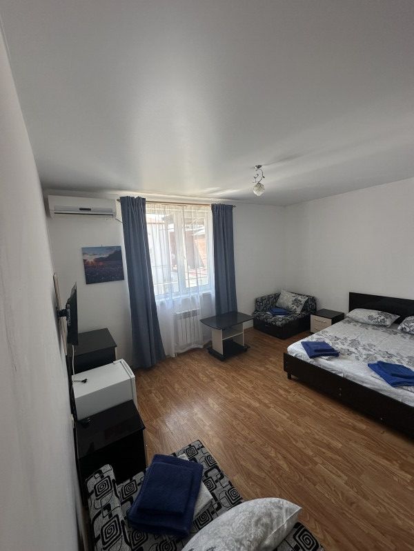 Просторный однокомнатный номер, где каждый найдет место для себя. Для вашего удобства мы подготовили двуспальную кровать, раскладной диван и диван-тахту.
