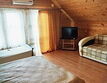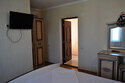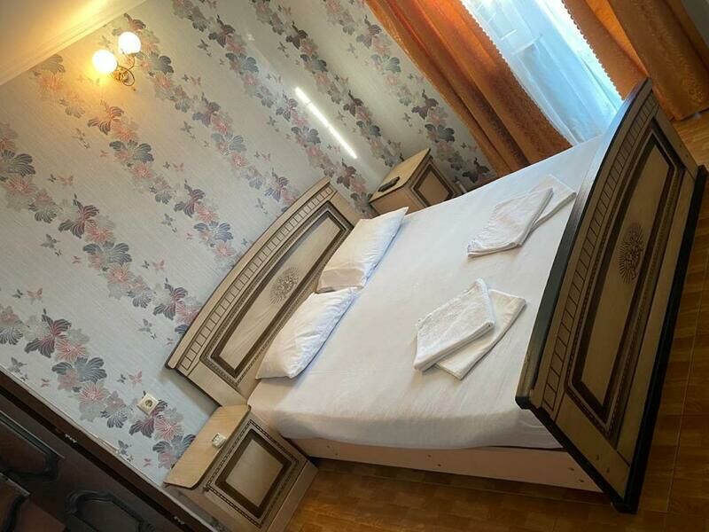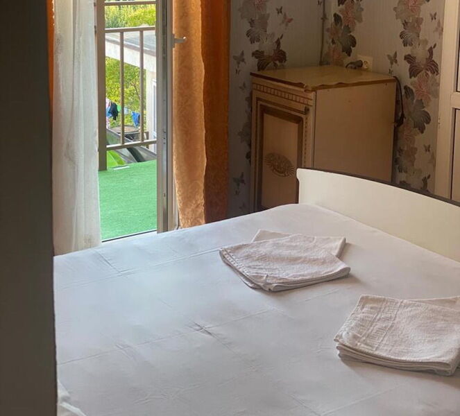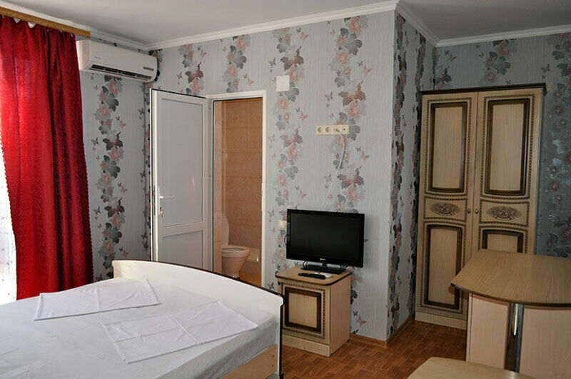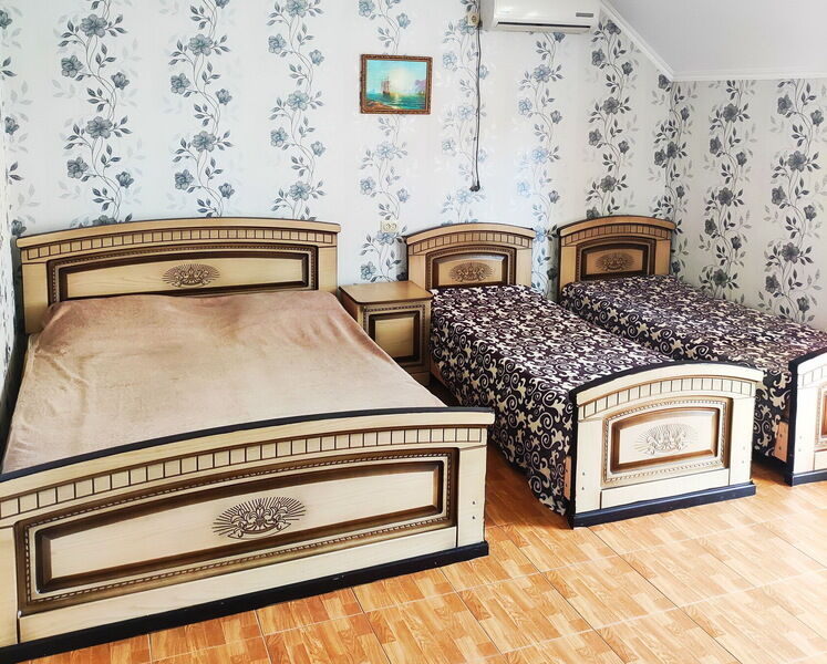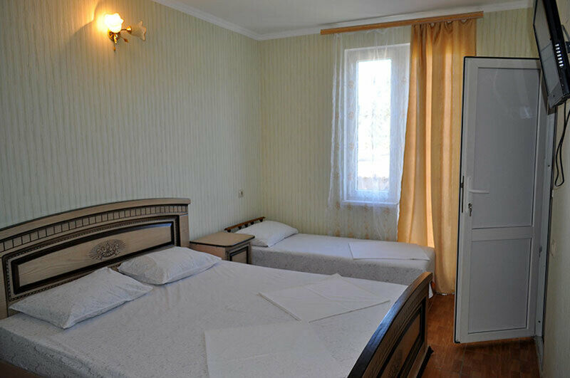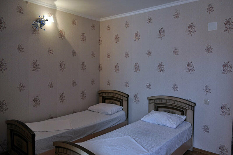 Сам гостевой дом представляет из себя трехэтажный корпус и занимает небольшую закрытую территорию в 650 метрах от моря. В распоряжении гостей комфортабельные номера, способные вместить от 2-х до 5-ти человек. В каждом номере предусмотрена собственная ванная комната, есть кондиционер, небольшой холодильник, телевизор с плоским экраном. На каждом этаже организована кухня, где отдыхающие могут приготовить или разогреть еду.