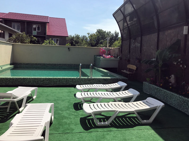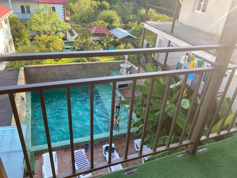 Среди услуг также – мангальная зона в зеленом внутреннем дворике, уличный бассейн. В 5 минутах ходьбы разместился обустроенный галечный пляж с кафе, сувенирными палатками и пунктом проката пляжного инвентаря.