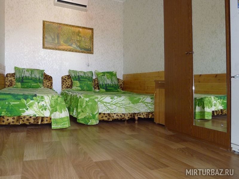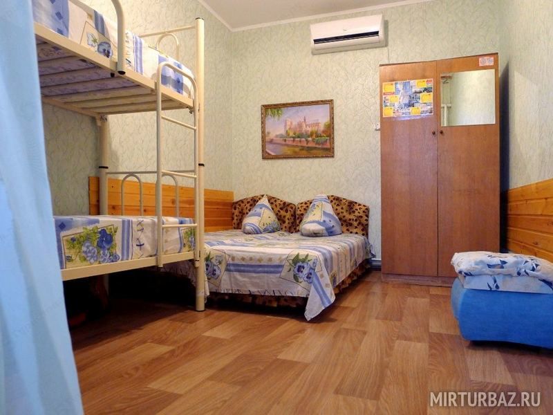 В шаговой доступности от гостевого дома "АББА" находятся магазины. Приморский бульвар со множеством кафе и рестораном, пляж, океанариум, дельфинарий, аквапарк, остановка общественного транспорта. В пяти минутах ходьбы действует парк отдыха и аттракционов им. Поддубного. До центрального пляжа 10 минут на маршрутном такси. Для размещения отдыхающих предлагаются номера с удобствами и с частичными удобствами. В номерах необходимая мебель, односпальные кровати, телевизор, холодильник, сплит-система.