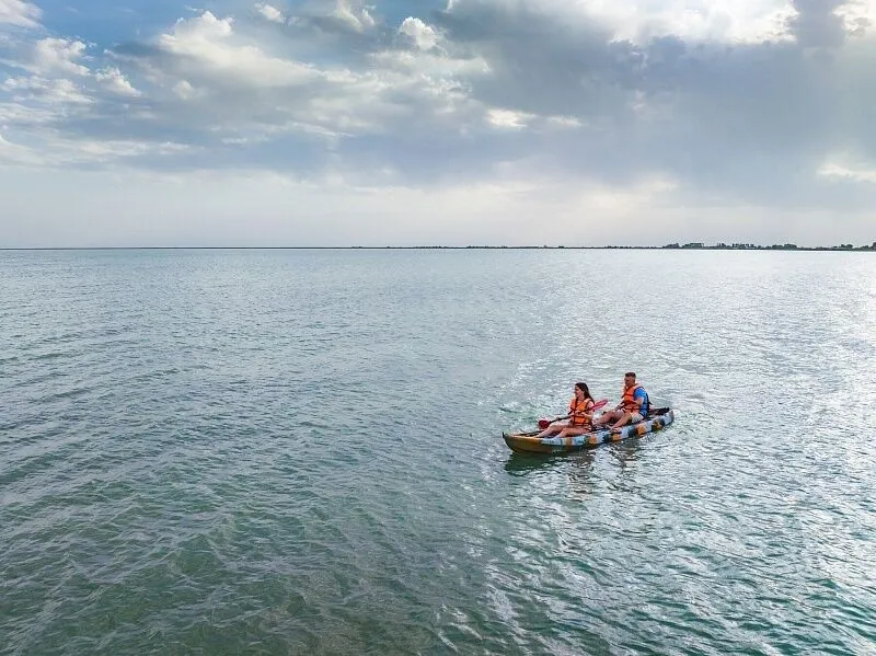 Для тех, кто желает испытать особую близость с природой, предусмотрена аренда одноместного или двухместного каяка — возможность самостоятельно прокатиться по водам лимана и запечатлеть его красоту.