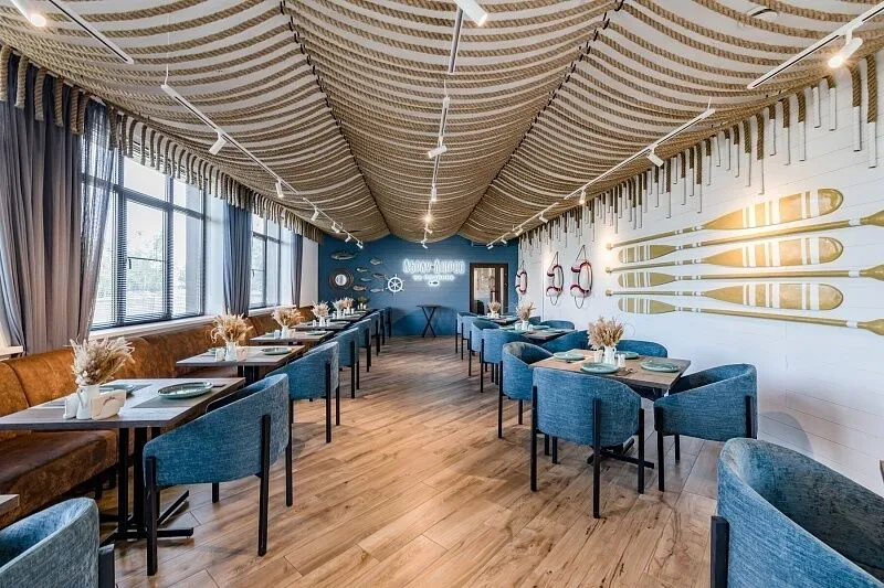Ресторан базы отдыха «Абрау-Дюрсо на плавнях» приглашает ценителей гастрономических изысков в мир авторской кухни. В меню представлен широкий ассортимент блюд на любой вкус: от сытных завтраков и освежающих салатов до горячих кулинарных шедевров, изысканных десертов и богатой коллекции напитков, включая продукцию знаменитого винного дома «Абрау-Дюрсо».