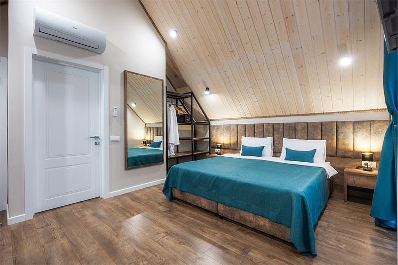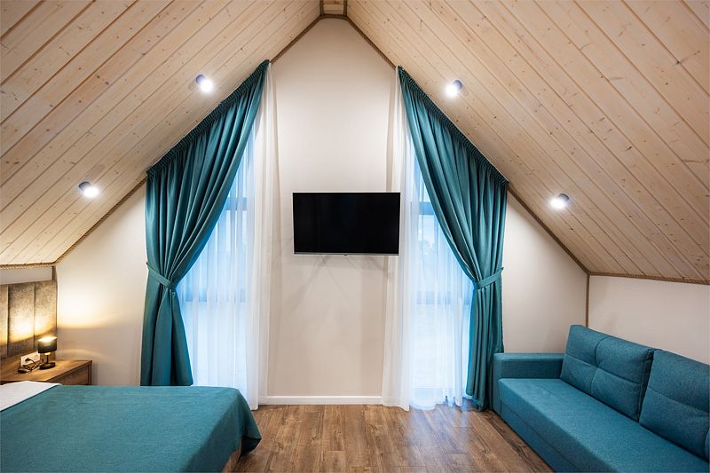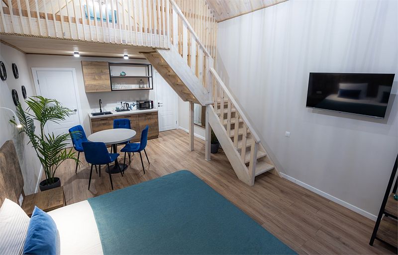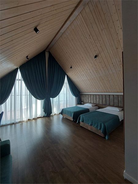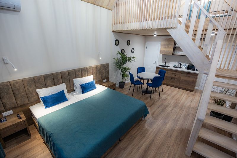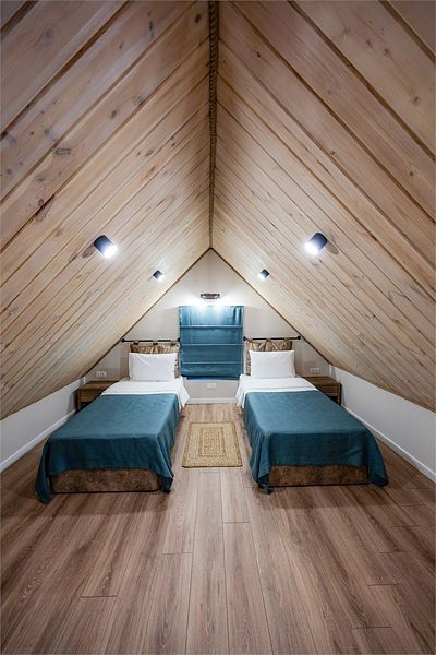 Уютный двухуровневый 4-местный номер с чудесным видом и выходом на общую террасу.