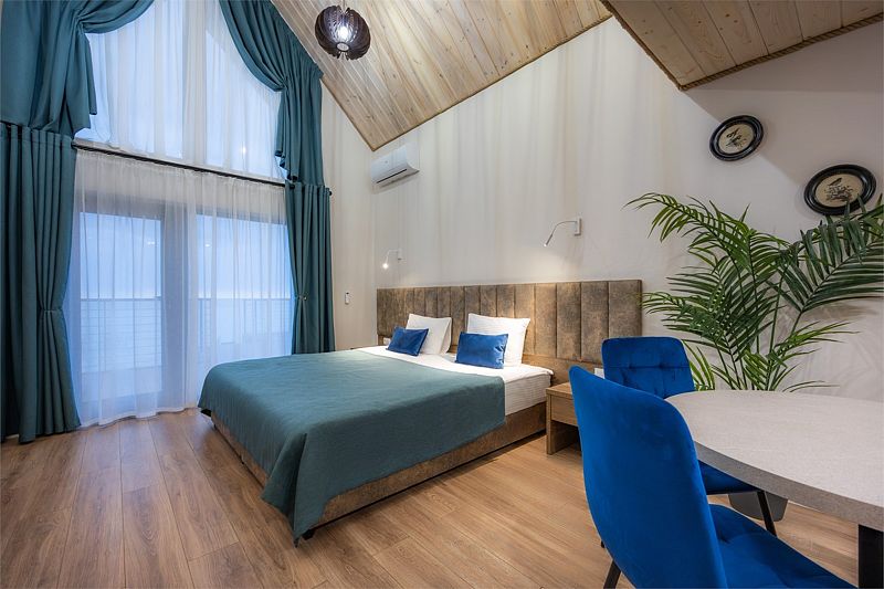 В номерах: рабочий стол, шкаф, телевизор, мини-бар, сейф, сплит-система, фен, душ, набор косметики и гигиенических принадлежностей, бесплатный wi-fi, вид из окна на Большой Кирпильский лиман.