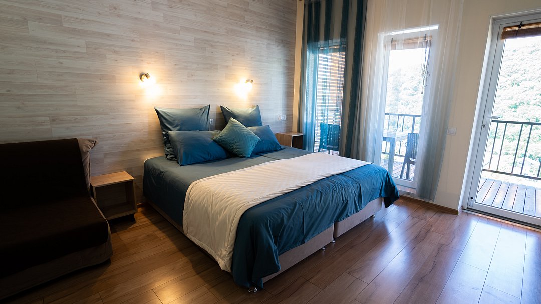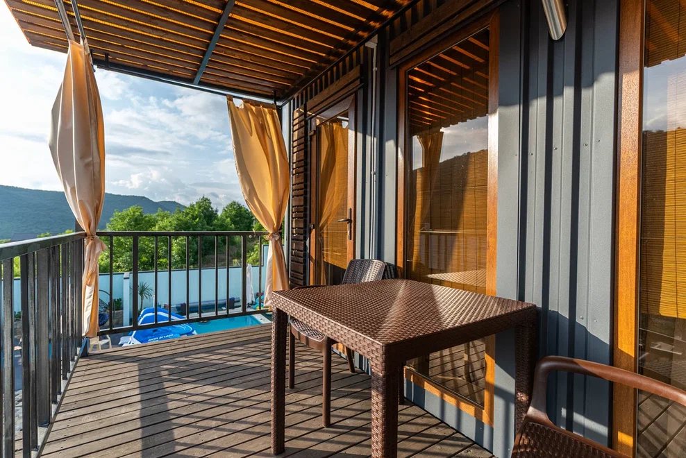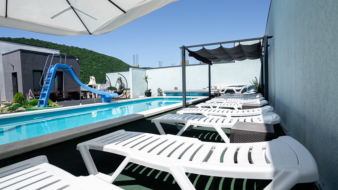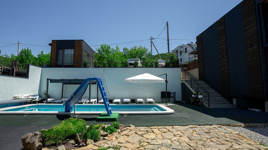 На территории вы можете насладиться свежестью утренней воды в бассейне, наслаждаясь горными пейзажами вокруг. В пешей доступности для Вас чистейшее озеро Абрау, а также пляж Abrau Beach на побережье Черного моря. Отдых, который позволит отдохнуть и телом, и душой.