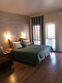Квартира-студия в Гостевом доме подходит для размещения как двух взрослых гостей, так и четырех взрослых гостей. В апартаментах есть: удобная двуспальная кровать с прикроватными тумбочками, телевизор, шкаф, гладильная доска и утюг.