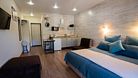 Квартира-студия «Семейная» в Гостевом доме прекрасно подходит для проживания четырех человек. В ней установлена комфортная двуспальная кровать с прикроватной тумбочкой и телевизором. Двухъярусная кровать подходит как для взрослых, так и для детей.