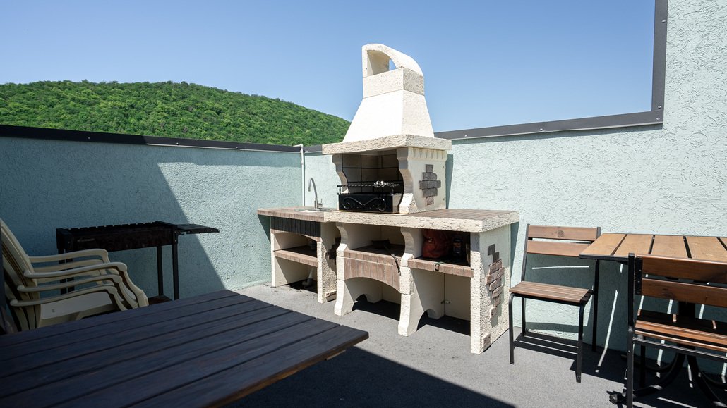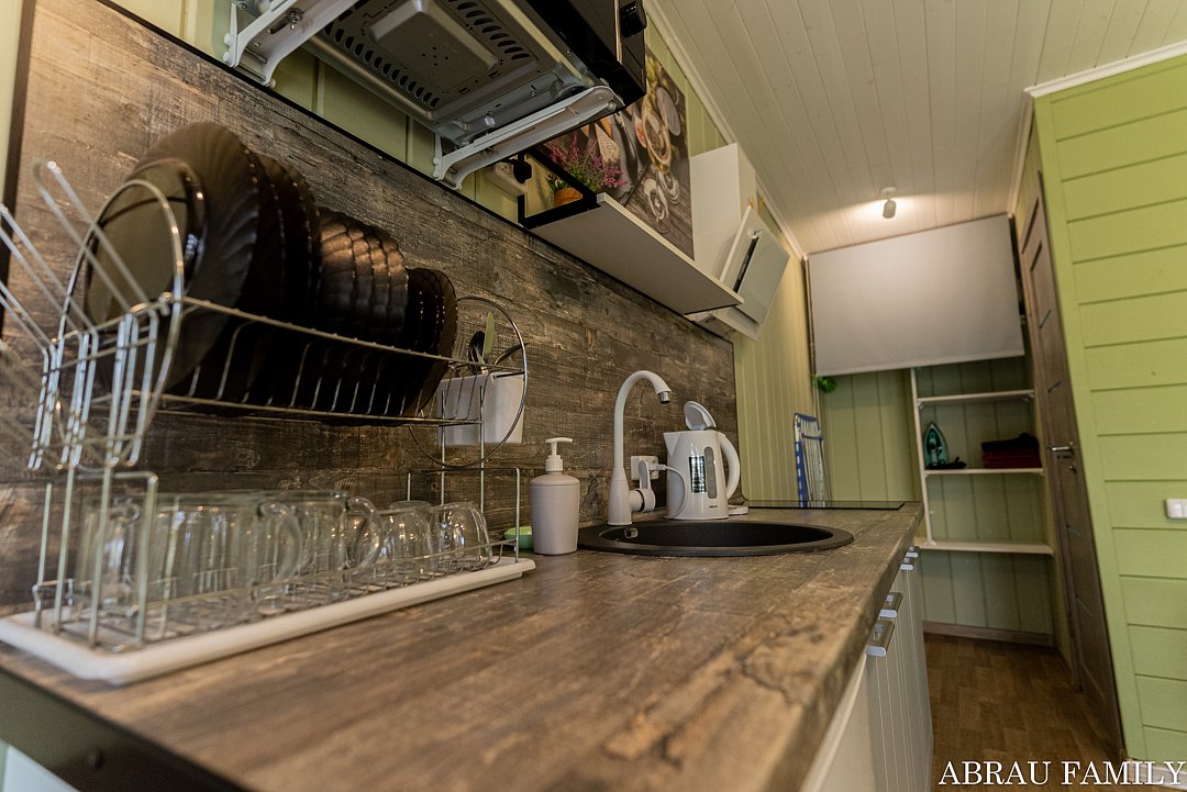 Читать полностьюГостевой дом Abrau Family приглашает вас посетить уютную баню, где вы сможете отлично провести время с семьей или друзьями. В бане есть зона отдыха с мягкой мебелью, телевизором и потрясающим видом на горы Абрау. Это место подарит вам ощущение свежести и оставит яркие воспоминания об отдыхе.