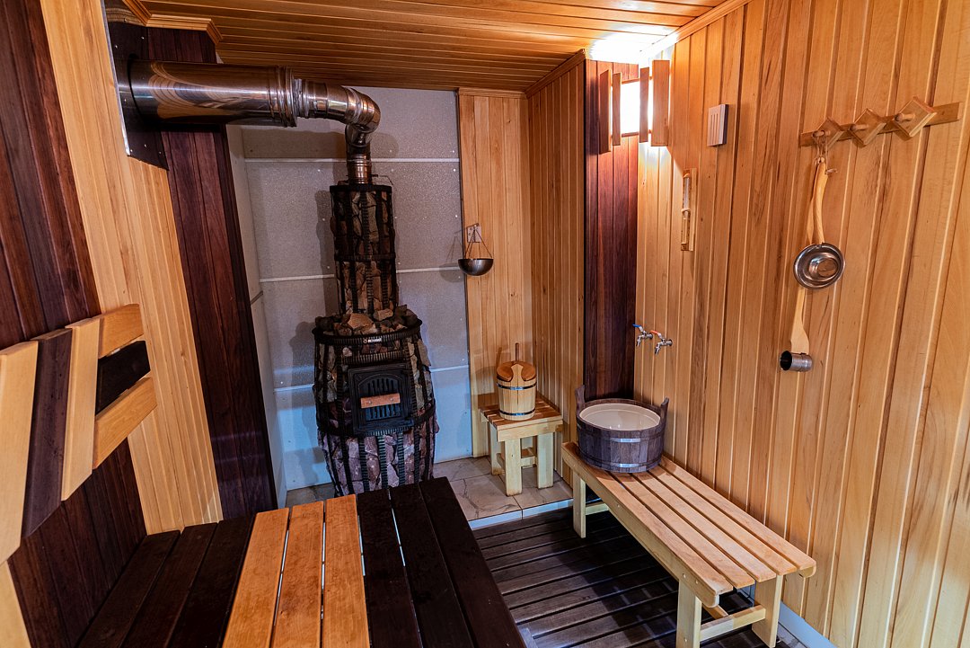 Традиционная русская парная здесь — это настоящее пространство для восстановления сил. Пар заряжает энергией, а веники, сделанные из целебных трав, улучшают самочувствие, стимулируют обмен веществ, укрепляют дыхательную систему и повышают гибкость мышц и суставов.