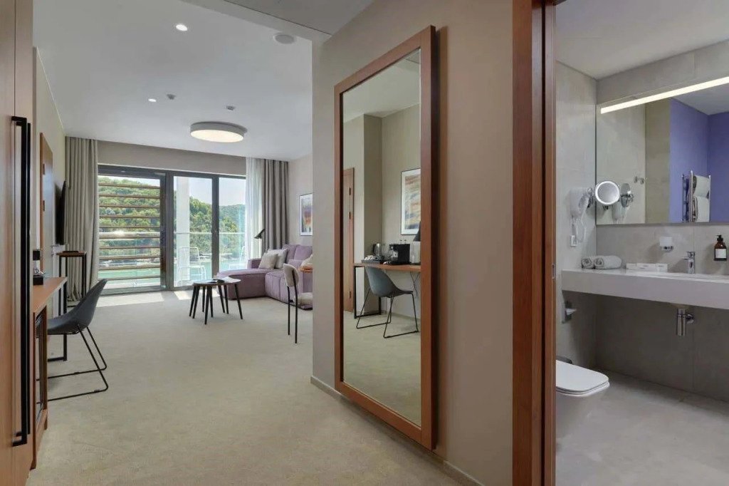 - посещение термальной зоны СПА (посещение безлимитное для категорий Джуниор Сюит, Люкс, Гранд Люкс; для категорий Стандартный и Семейный количество посещений равно количеству ночей проживания)