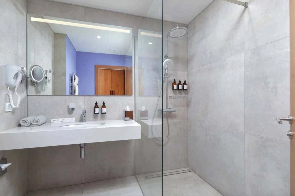 Отель призван погрузить гостей в философию «территории хорошего вкуса». Лаконичный дизайн дополнен деталями из натуральных материалов, связывающих интерьер с природой курорта. В оформлении преобладают геометричность, пастельные голубые и винные оттенки. Панорамные окна добавляют легкости и воздушности пространству, а также позволяют гостю почувствовать себя частью терруара Абрау-Дюрсо.