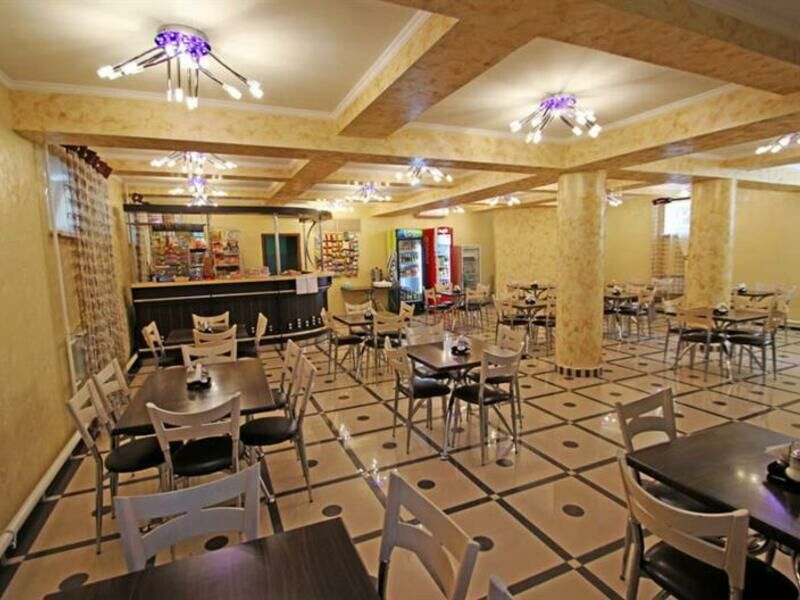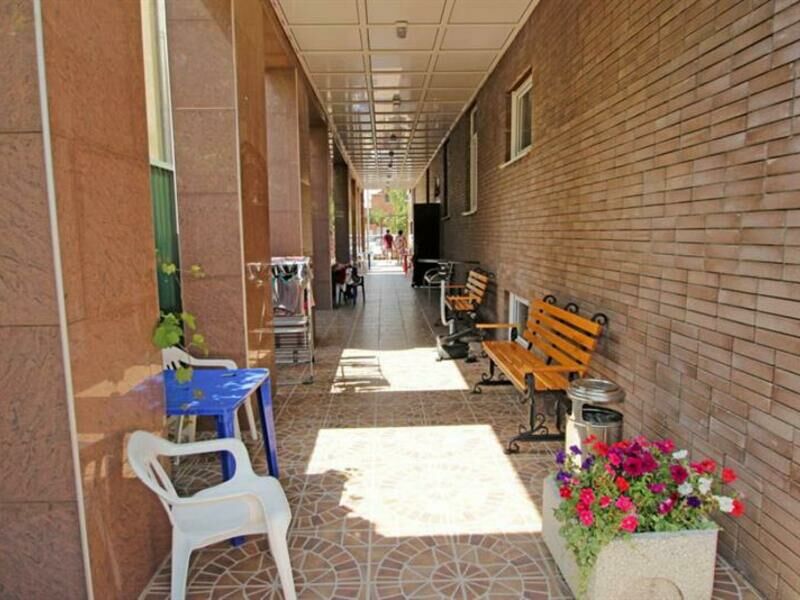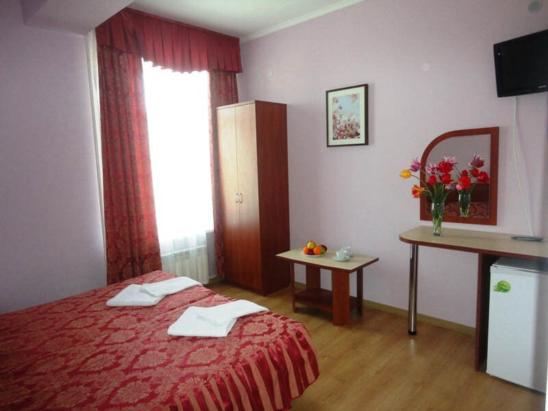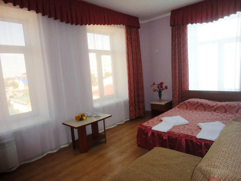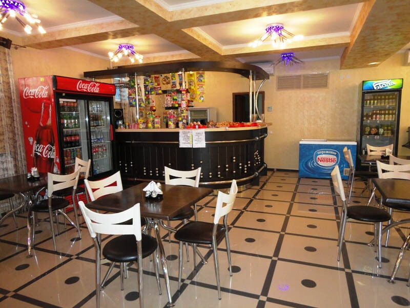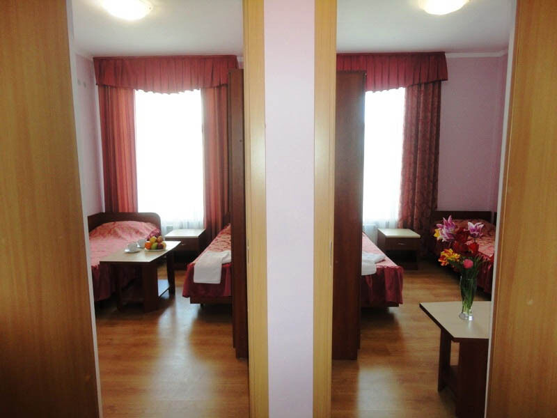 Возле четырехэтажного корпуса «трехзвездочного» гостевого дома распологается собственная парковка, а во дворе – зона отдыха, детские аттракционы и кафе с барной стойкой.