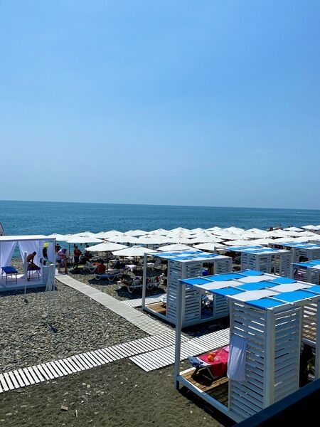 Инфраструктура: лежаки, зонтики, шезлонгиУдобства на пляже (туалет, душ)
