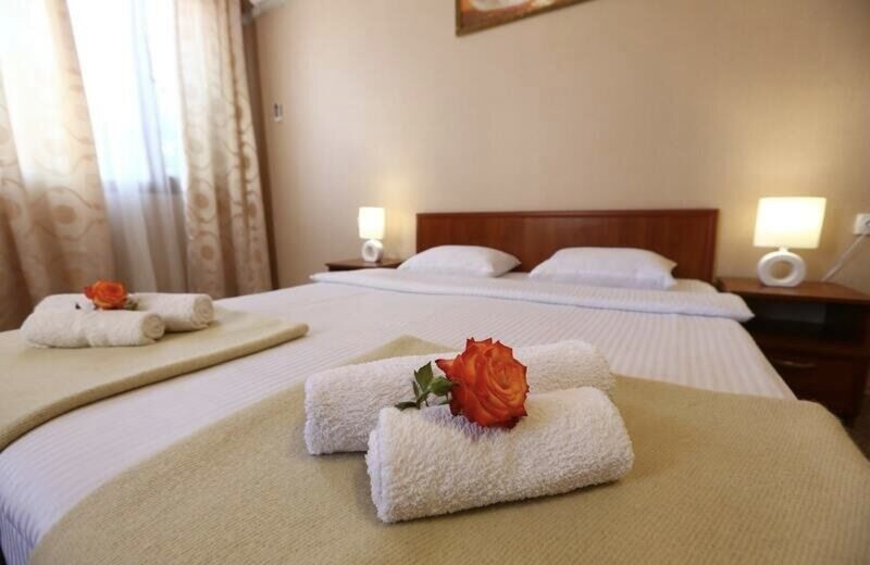 Пятиэтажный корпус отеля находится всего в 100 метрах от моря. Гостей ожидают номера разные по уровню комфорта, площади и вместимости. Однако независимо от категории везде есть собственная ванная комната и кондиционер. Из некоторых номеров открываются виды на море.