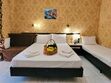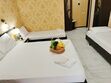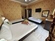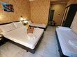 Двуспальная кровать, две односпальных кровати, мини-диван, прикроватные тумбочки, шкаф, туалетный столик, журнальный столик, вешалка, зеркало, холодильник, ТВ, кондиционер, пуфик. Ванная комната — душевая и санузел, фен, набор полотенец.