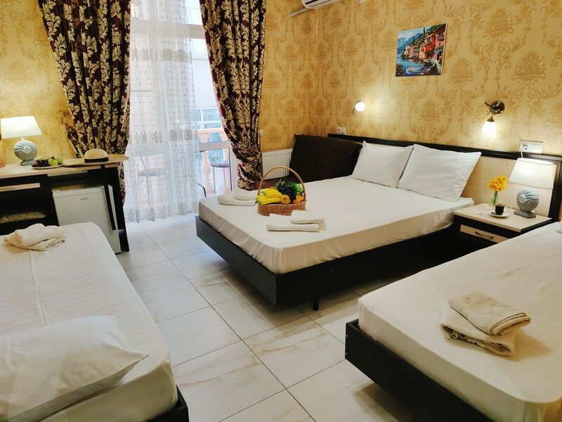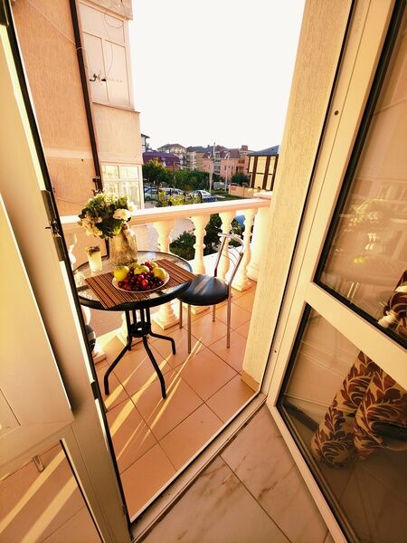 Всего 10−15 минут будут отделять Вас от моря, а также, недалеко от нас расположены: Набережная Паралия, Пляж Жемчужина, аквапарк, дельфинарий, магазины, кафе.
