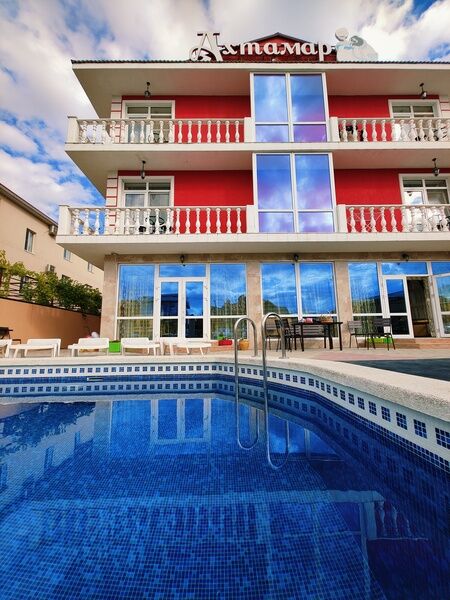 Поездом до ж/д вокзала г. Анапа, далее пройти пешком 460 м до остановки «Вокзал Анапа», далее на маршрутном такси №114 до остановки «Аквамарин», далее пройти пешком 440 м до отеля.