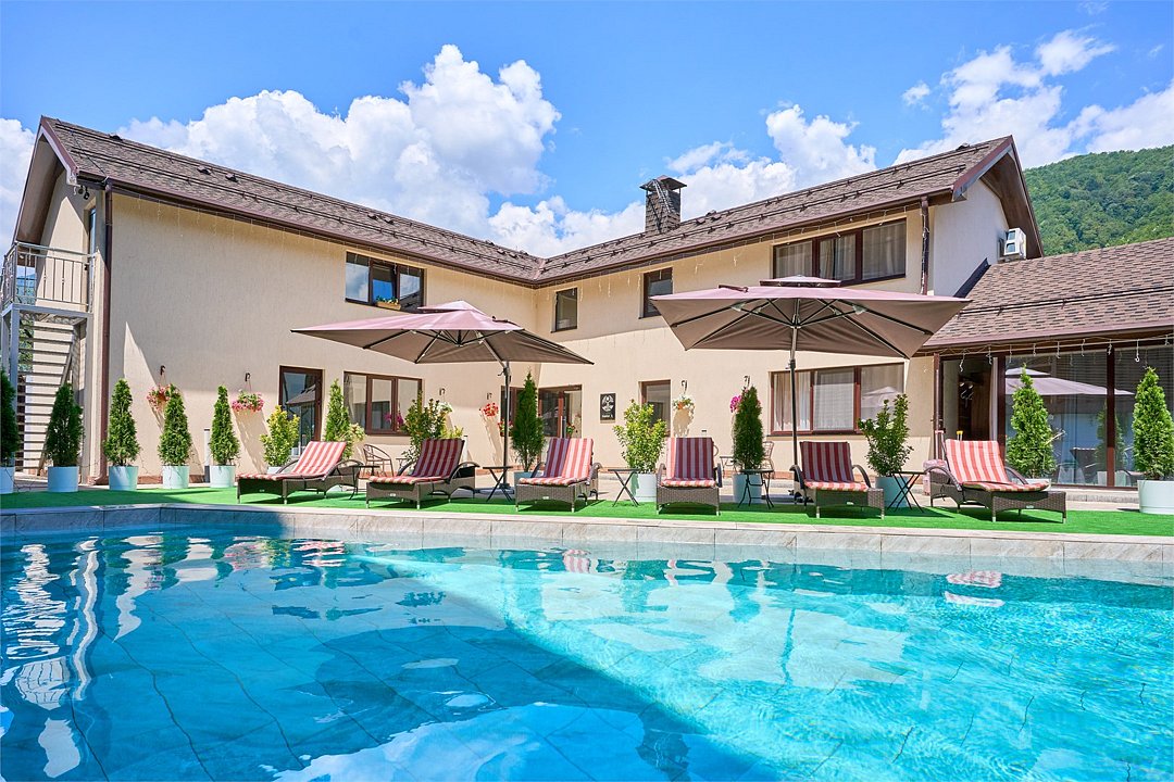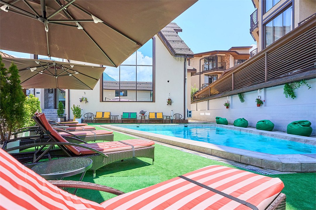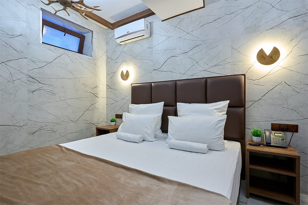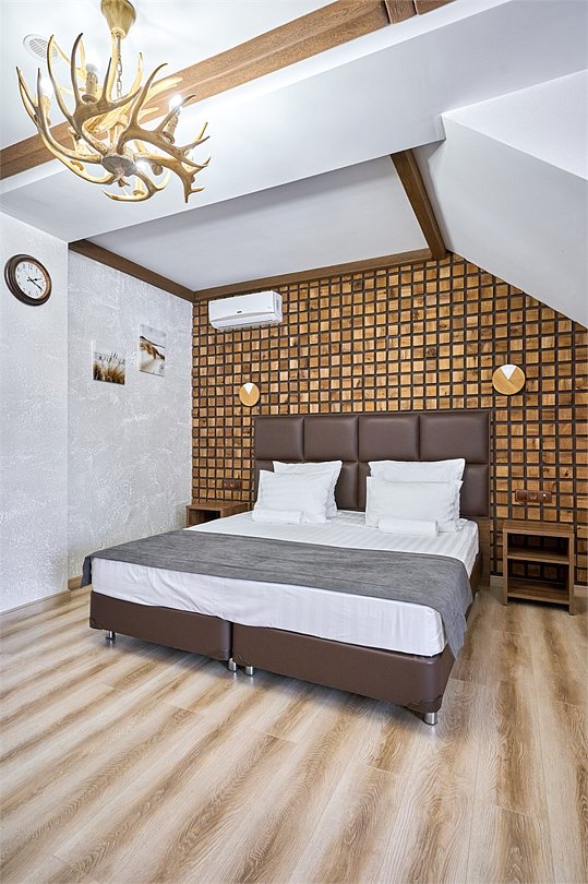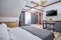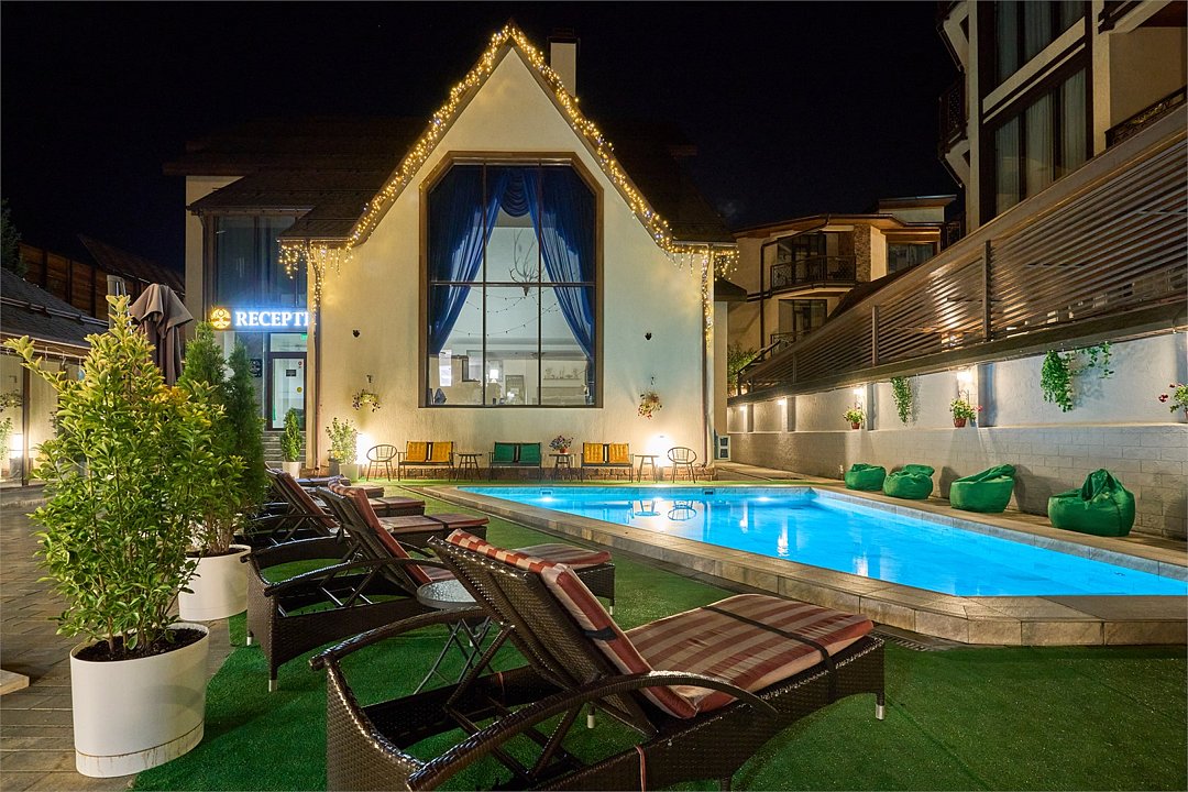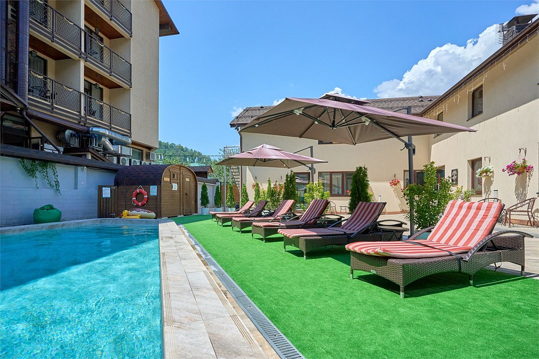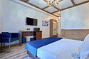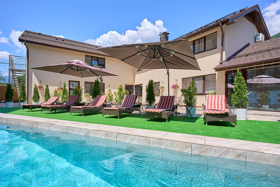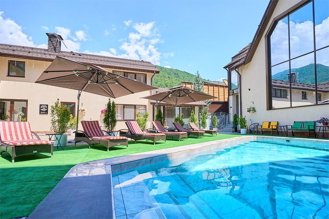 Комфортный двухместный улучшенный предлагает идеальные условия для отдыха и уединения. Каждый номер, площадью от 28 квадратных метров, оснащен как двуспальными, так и раздельными кроватями, что обеспечивает максимальный комфорт для гостей с разными предпочтениями. Дополнительный диван-кровать создает комфорт и удобство, идеально подходя для семей с детьми или дружеских компаний. Уютный интерьер, продуманные детали и качественная мебель создают теплую и расслабляющую атмосферу. Номер станет отличным выбором для тех, кто ценит гармонию и высокий уровень сервиса во время своего отдыха. Все номера оборудованы балконами с летней мебелью и имеют вид на город и внутреннюю территорию отеля. Из некоторых номеров данной категории может открываться вид на горы, (обращаем ваше внимание что не из всех номеров категории Комфорт улучшенный открывается панорамный вид на горы). Ванная комната в дизайнерском исполнении с современным душем и ванной, полностью соответствует высоким стандартам комфорта. Для вашего комфортного проживания ежедневно у вас в номере зелёный и черный чай, а также кофе и сахар в индивидуальных упаковках - предоставляются бесплатно. Халаты - предоставляются по запросу, платно (500 рублей за пользование халатом). Обращаем ваше внимание на то что фото номеров носят ознакомительный характер и являются иллюстрацией типа и категории номера, фактический цвет стен номера и деталей интерьера а также конфигурация, тип и набор предметов мебели могут отличаться от той что представлена на фотографиях. Также обращаем внимание на то что: - площадь номеров в каждой категории может варьироваться в пределах 3 квадратных метров,; - этажи на которых расположены номера могут варьироваться; - набор мебели может варьироваться (например в некоторых номерах могут быть стулья со спинкой а в некоторых номерах могут быть пуфики, в некоторых номерах могут быть небольшие сервировочные столики на колёсах а в некоторых номерах могут быть круглые столы на ножках и т.д.) Так же может отличаться вид открывающийся из номера, цвет штор цвет покрывала и саше.Услуги и удобства