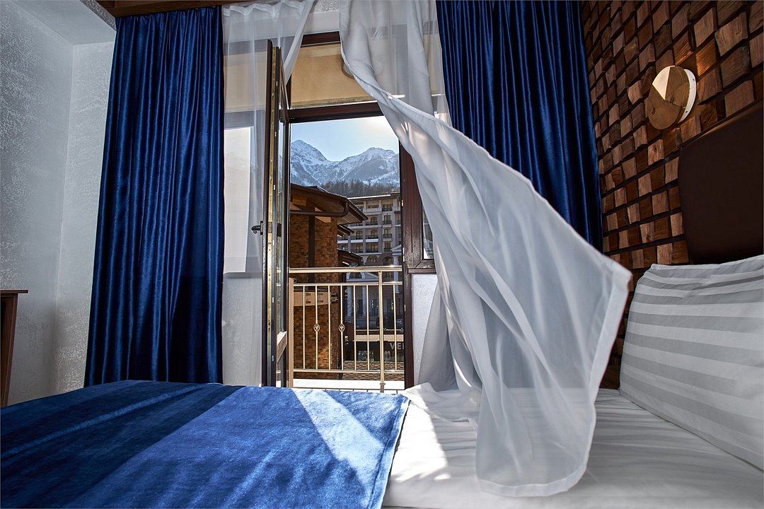 1 номер, расположен на 4-м этаже, в номере гидромассажная ванна в спальне, великолепный вид на горы.