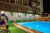 Wi-Fi, кондиционер, светильник, фен, электронные замки, утюг, душевая кабина, ванна, тапочки, балкон, двуспальная кровать, шкаф для одежды, вешалки, чайный набор, сейф, чайник, унитаз, вид на город, кулер на этаже, вид во двор, ламинат, стаканы, столовые приборы, стул, стол, туалетные средства, сплит-система, цифровое тв, внутренний телефон, телевизор с плоским экраном, мини-холодильник, номер для некурящих, общественный бассейн, чайная станция, уборка номера, мыло, без питомцевВ гостиничном номере