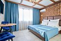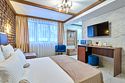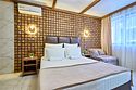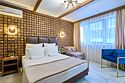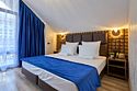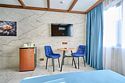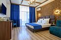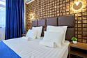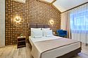 Полулюкс 2-х местный с двумя дополнительными местами — это идеальное решение как для семейного отдыха, так и для дружеских встреч. Просторные и красивые номера площадью 32–35 квадратных метров, оснащенные как двуспальными, так и раздельными кроватями, обеспечивают комфорт и уют. Уютный интерьер, продуманные детали и качественная мебель создают теплую и расслабляющую атмосферу. Номер станет отличным выбором для тех, кто ценит гармонию и высокий уровень сервиса во время своего отдыха. Просторная ванная комната в дизайнерском исполнении с современным душем и ванной полностью соответствует высоким стандартам комфорта. Для вашего комфортного проживания ежедневно у вас в номере зелёный и черный чай, а также кофе и сахар в индивидуальных упаковках - предоставляются бесплатно. Халаты - предоставляются по запросу, платно (500 рублей за пользование халатом). Обращаем ваше внимание на то что фото номеров носят ознакомительный характер и являются иллюстрацией типа и категории номера, фактический цвет стен номера и деталей интерьера а также конфигурация, тип и набор предметов мебели могут отличаться от той что представлена на фотографиях. Также обращаем внимание на то что: - площадь номеров в каждой категории может варьироваться в пределах 3 квадратных метров,; - этажи на которых расположены номера могут варьироваться; - набор мебели может варьироваться (например в некоторых номерах могут быть стулья со спинкой а в некоторых номерах могут быть пуфики, в некоторых номерах могут быть небольшие сервировочные столики на колёсах а в некоторых номерах могут быть круглые столы на ножках и т.д.) Так же может отличаться вид открывающийся из номера, цвет штор цвет покрывала и саше.Услуги и удобства