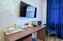 Wi-Fi, кондиционер, светильник, фен, утюг, душевая кабина, санузел, теплый пол, халаты, тапочки, косметические средства, двуспальная кровать, диван, стулья, шкаф для одежды, вешалки, зеркало, звуконепроницаемые стены и окна, чайный набор, сейф, чайник, душ, кулер на этаже, стаканы, столовые приборы, стол, туалет, цифровое тв, диван-кровать, внутренний телефон, телевизор с плоским экраном, мини-холодильник, без окна, чайная станция, мыло, без питомцевВ гостиничном номере