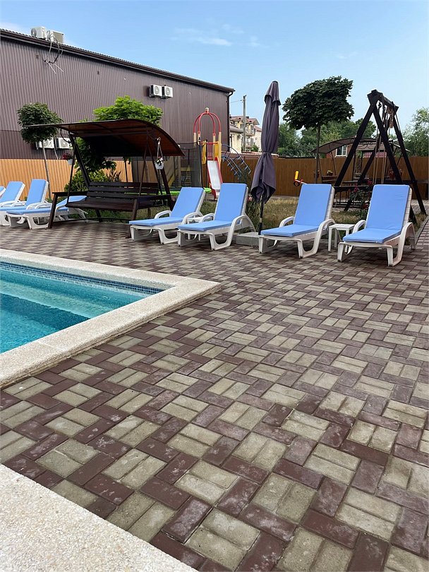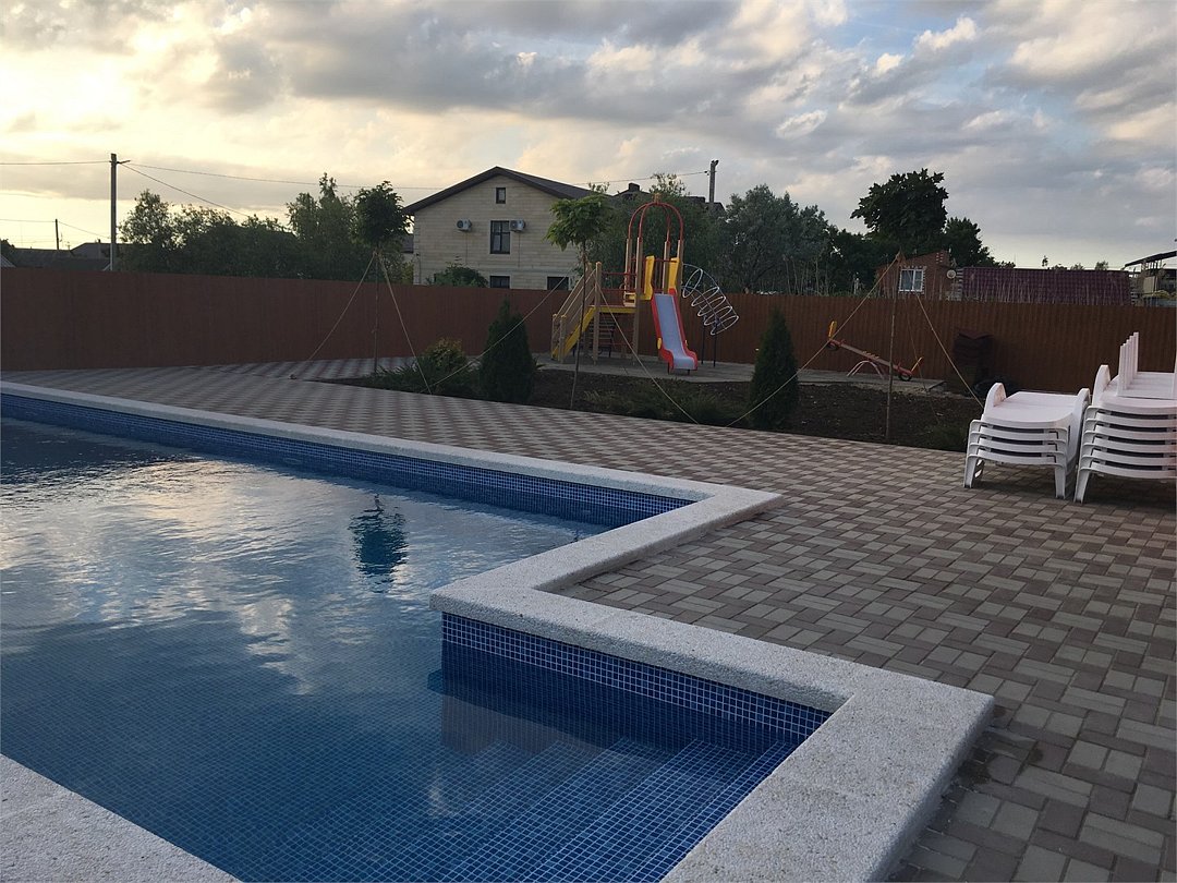 унас хороший бассейин с подогревом .детская площадка .чистота и порядок. бесплатная парковка .зона барбекю.