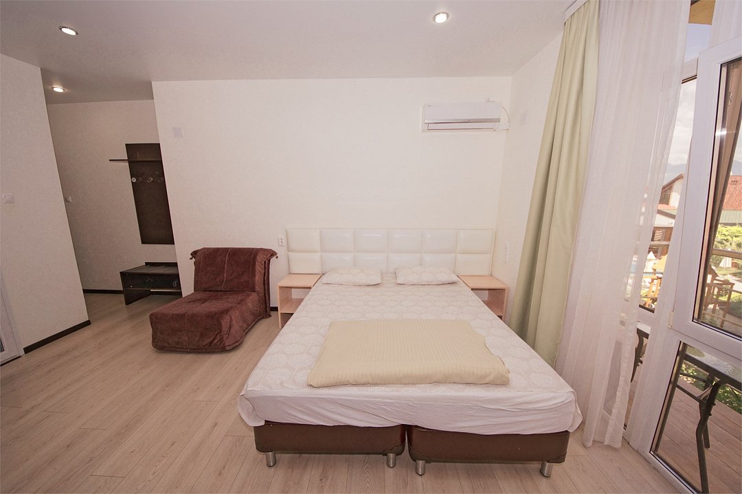 Апартаменты с изолированной спальней, кухонным уголком, санузлом, кондиционером, балконом, телевизоромУслуги и удобства