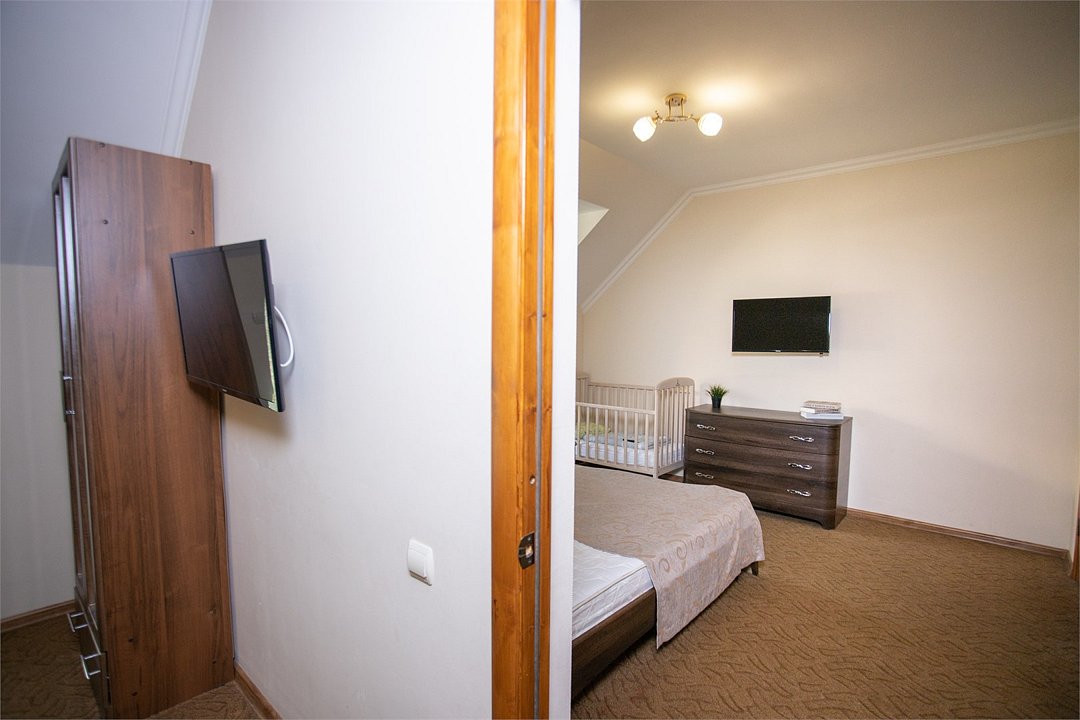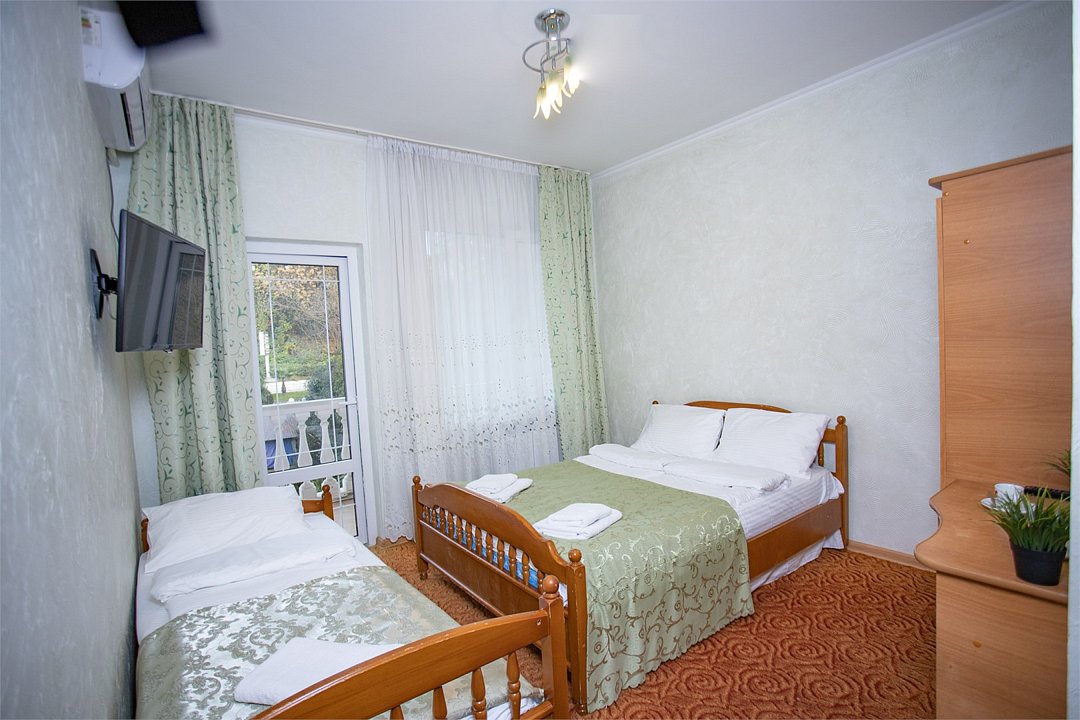 Двухкомнатный семейный номер с балконом. Можно поставить допместо за допплату. Есть общая кухня во двореУслуги и удобства