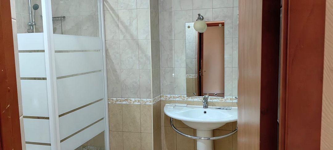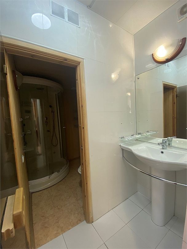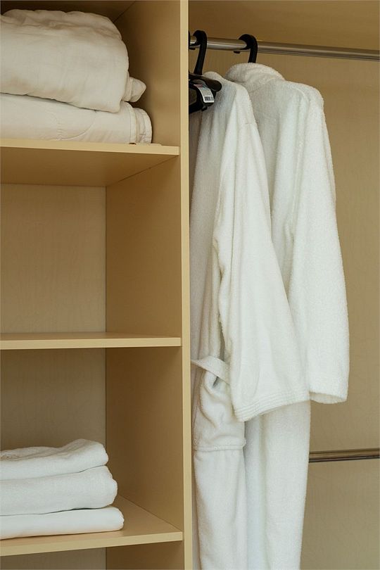 Санузел — душевая кабина, стиральная машина, фен, халаты, тапочки, полотенце, мыло/шампунь. Коридор - шкаф, гладильная доска, утюг.