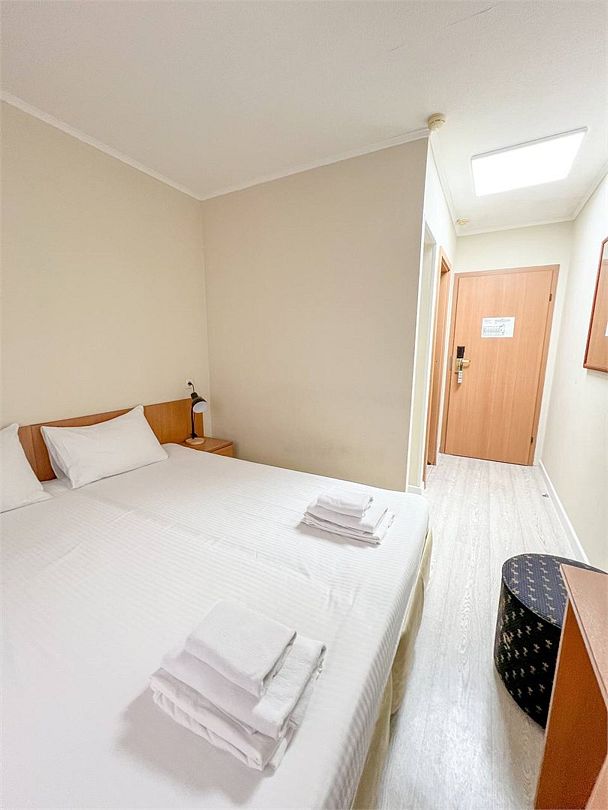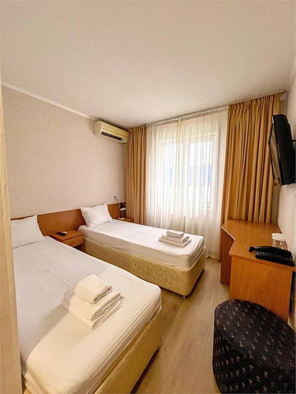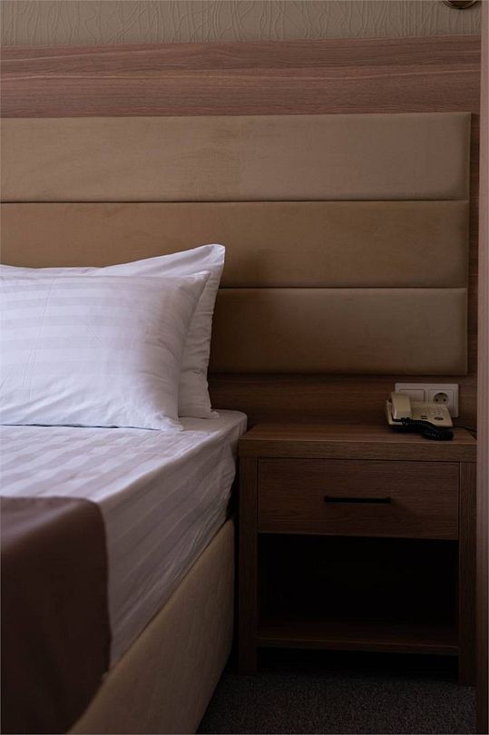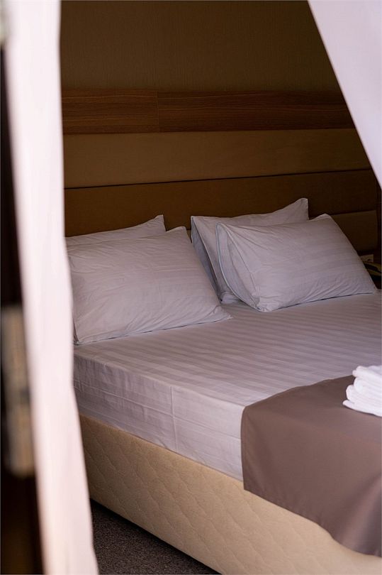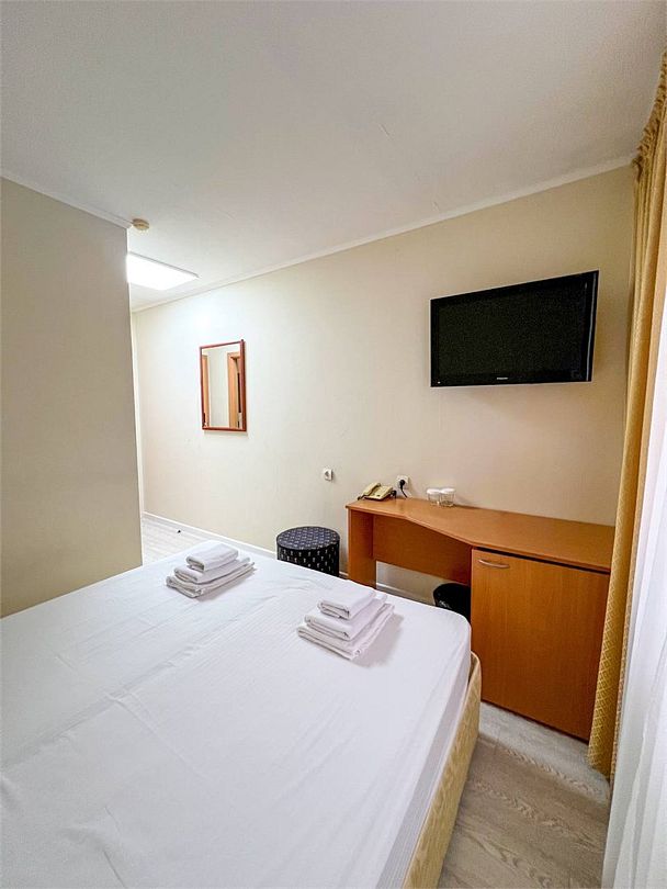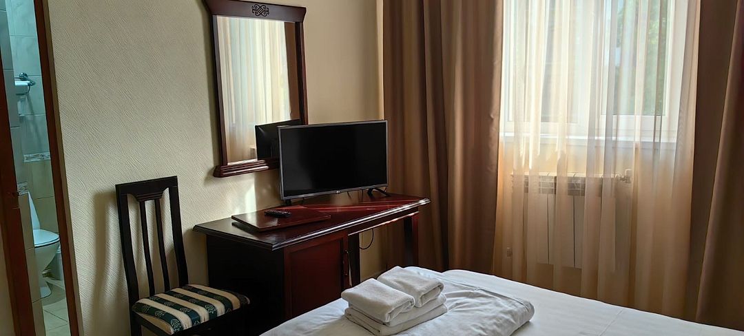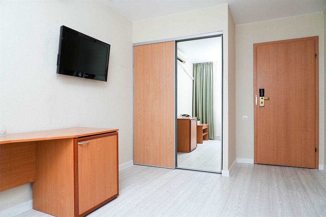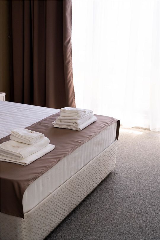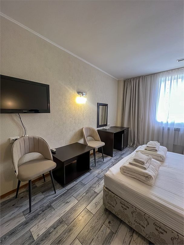 В номере — двуспальная или 2 раздельные кровати, 2 прикроватные тумбочки, столик с зеркалом, шкаф для одежды, сплит-система или кондиционер, телефон, телевизор, мини бар, фен, санузел, полотенце, мыло/шампунь, предусмотрено дополнительное место (одноместный раскладной диван).