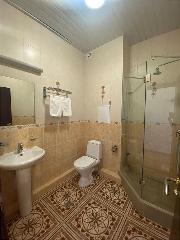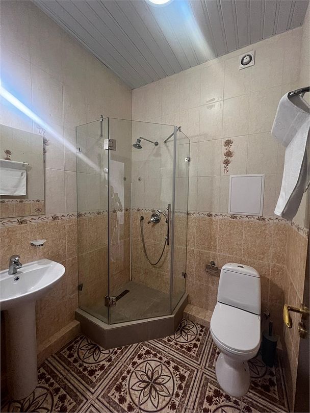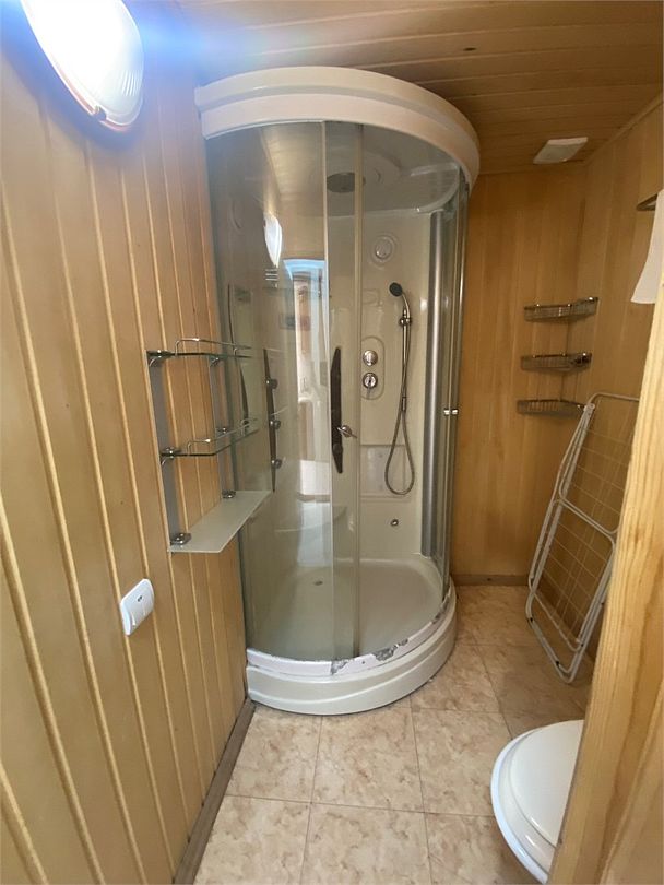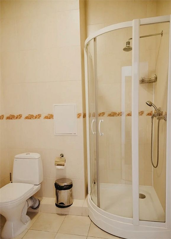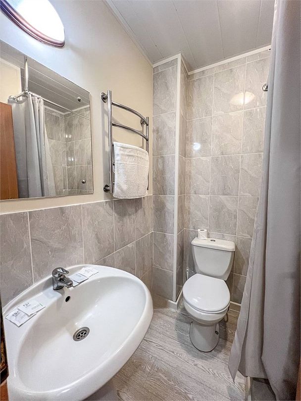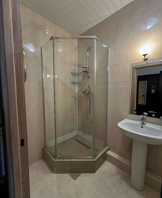 Санузел — душевая кабина, фен, халаты, тапочки, полотенце, мыло/шампунь.