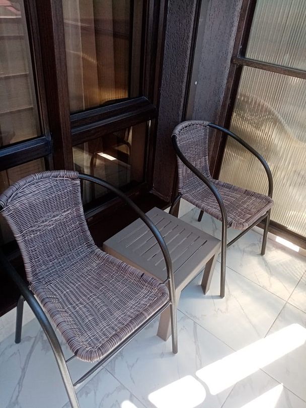В номере: Гостиная — большой диван кровать, столик, телевизор, сплит-система, холодильник, чайник, фен, санузел, халаты, тапочки, полотенце, мыло/шампунь, балкон (столик со стульями, сушилка для белья).