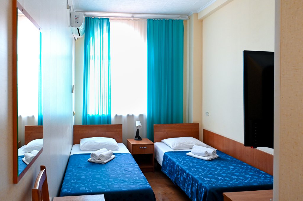 Две отдельные односпальные кровати, кондиционер, холодильник, телевизор, ванна. Номера данной категории расположены на мансарде 6 этаж (лифт до 5-этажа, затем необходимо подняться один этаж пешком). Часть номеров с видом на море, часть с видом на горы.Услуги и удобства