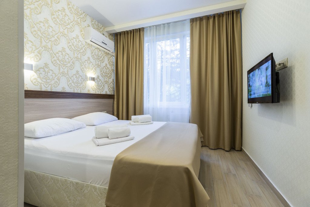 В номере одна двуспальная кровать, кондиционер, телевизор, современная душевая кабина, функциональная мебель. номера данной категории расположены на 1, 2, 3, 4 этажах.