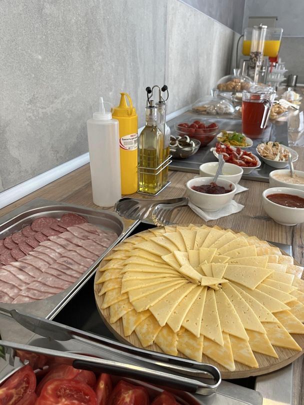 Нас хотели заселить в номер на 3 этаже, что не очень удобно с малышом. Мы очень просили хотя бы этажом ниже. На что управляющая Марина сказала есть номер, но освободится через час после уборки и предложила пройти в это время на ужин, мы согласились. Все пожелания и просьбы выполняются в мгновение ока, сервис на высоте, кухня отличная, отдельное спасибо сотрудникам столовой! Это пчелки, которые трудятся практически 24/7, чтобы все вкусно покушали. Питание разнообразное шведский стол, нам все очень понравилось.