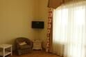 Трехэтажный корпус отеля, выстроенный в интересных архитектурных формах, занимает благоустроенную территорию площадью 4000 кв.м. Гостей ожидают номера улучшенных категории — Полулюкс, Люкс, Делюкс. Интерьер в комнатах выдержан в светлых пастельных оттенках, везде есть отдельный санузел с душем, кондиционер, телевизор, холодильник.