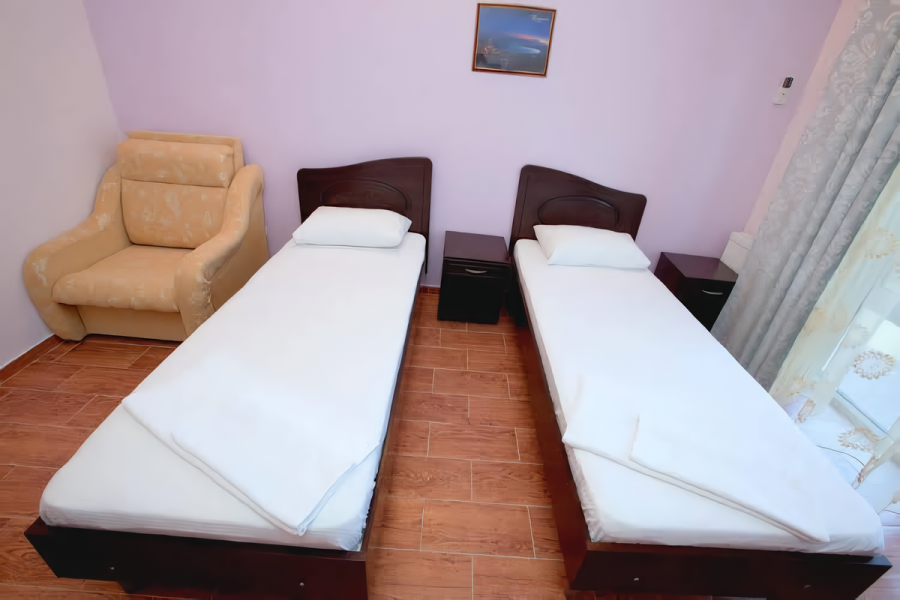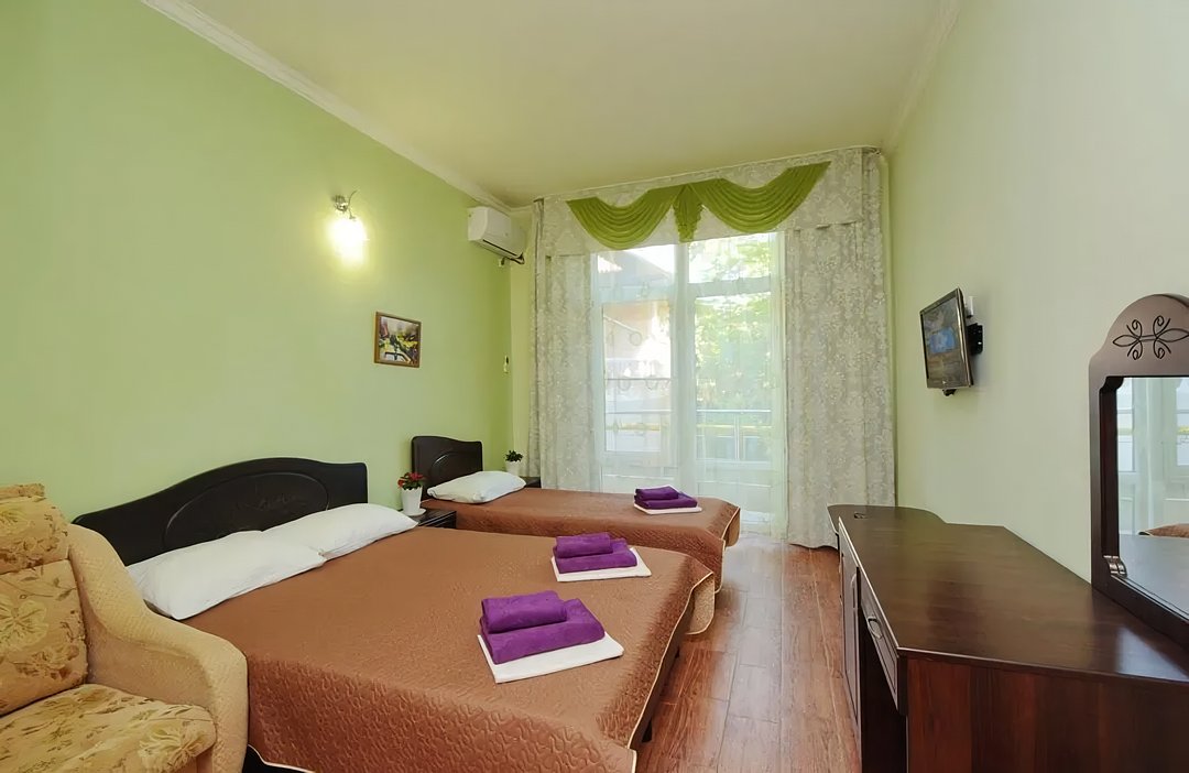 Номерной фонд представлен номерами категорий Стандарт и Комфорт, рассчитанные от 2 до 5 человек. Каждый номер ярко оформлен, располагает всем необходимым для комфортного времяпрепровождения. В распоряжении гостей телевизор с плоским экраном, холодильник, кондиционер, интернет Wi-Fi, шкаф и удобная кровать. Ванная комната оснащена душем и всеми необходимыми туалетно-косметическими принадлежностями.