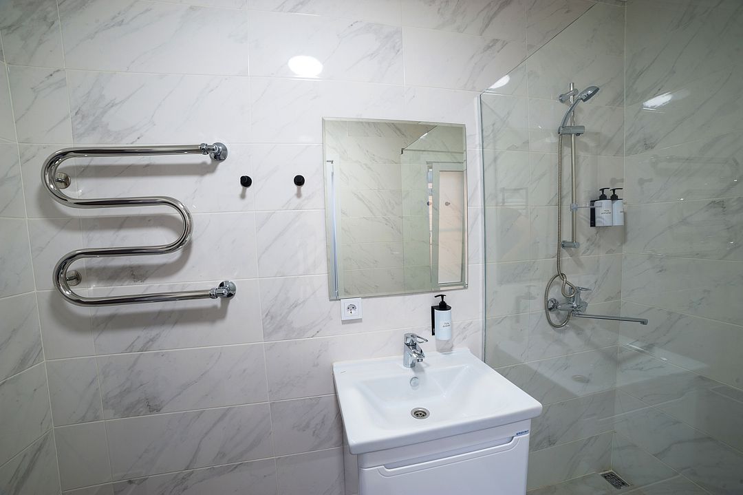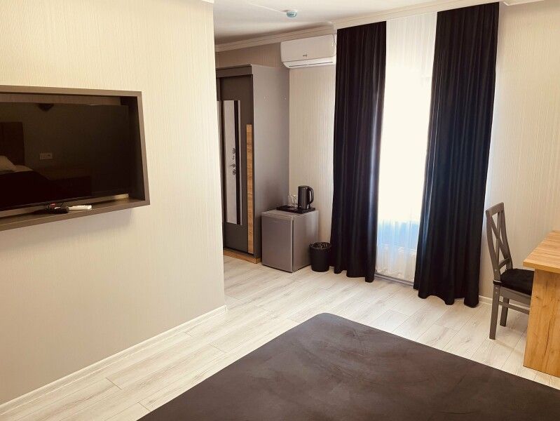 В номере установлен телевизор, холодильник для хранения продуктов, а также сплит-система для поддержания оптимальной температуры. Для удобства гостей предусмотрен электрический чайник. Собственная душевая комната укомплектована полотенцами для бассейна, для душа, рук и ног, а также шампунем, жидким мылом и гелем для душа. При аренде данного номера гостям предоставляется: бесплатная парковка, пользование бассейнами, общей теплой беседкой и общей мангальной зоной, зоной спа (хаммам).