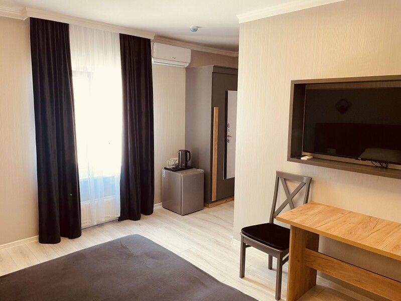 В отличии от номеров категории Стандарт, номера данной категории расположены ближе к бассейну, вид из окна на внутренний двор. В номере установлен телевизор, холодильник для хранения продуктов, а также сплит-система для поддержания оптимальной температуры. Для удобства гостей предусмотрен электрический чайник. Собственная душевая комната укомплектована полотенцами для бассейна, для душа, рук и ног, а также шампунем, жидким мылом и гелем для душа. При аренде данного номера гостям предоставляется: бесплатная парковка, пользование бассейнами, общей теплой беседкой и общей мангальной зоной, зоной спа (хаммам).