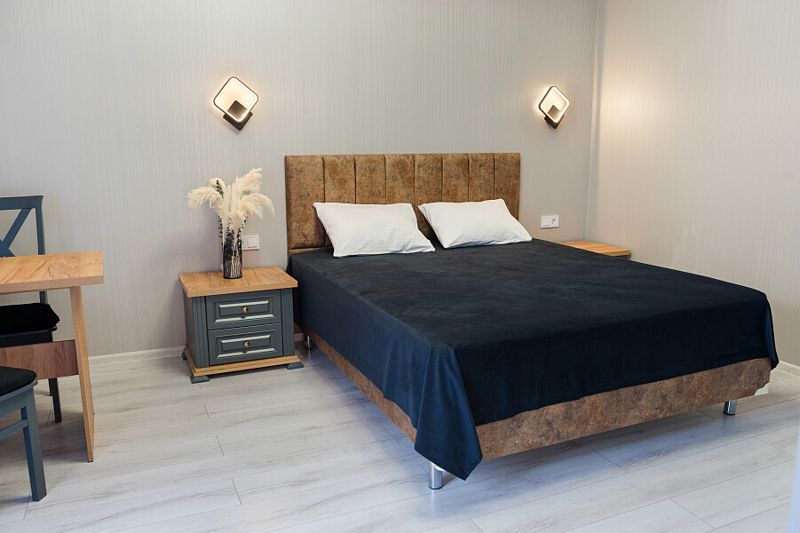 Номер категории Стандарт с одной двуспальной кроватью предлагает комфортное размещение с современным оборудованием.