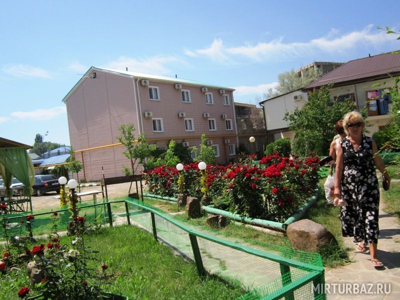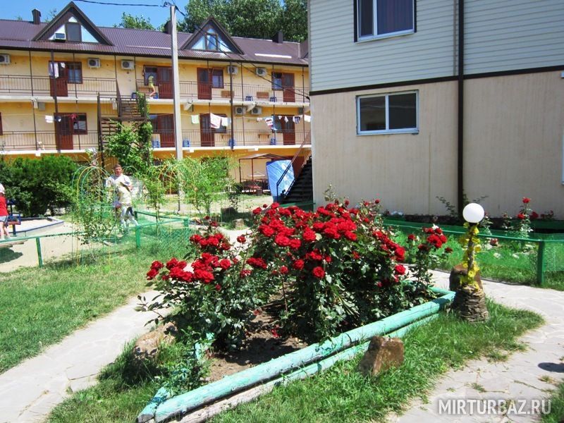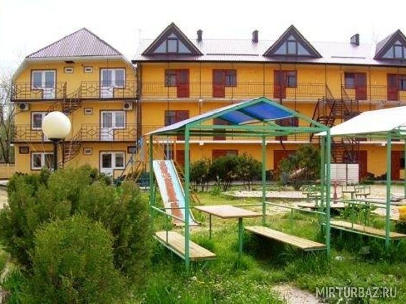 Отдыхающие могут расположиться в комфортабельных двух-, трех- или четырехместных номерах. Гости сами могут приготовить себе еду в кухне или сходить в столовую. На базе можно отдохнуть в беседках, пожарить шашлыков на мангале. Дети смогут поиграть на детской площадке, в песочнице, покататься на качелях. Желающие могут заказать различные экскурсии или потанцевать на дискотеке. До песчаного пляжа с аквапарком всего пять минут. Недалеко от базы расположены рынок и продуктовые магазины.