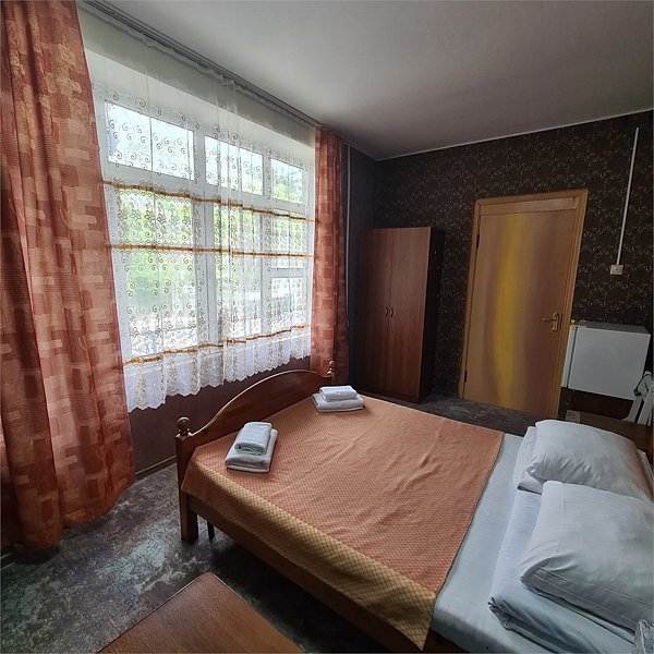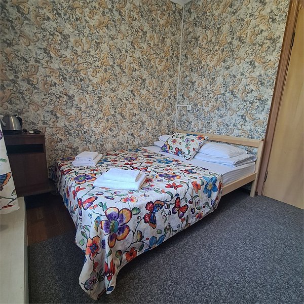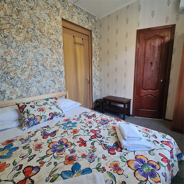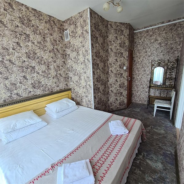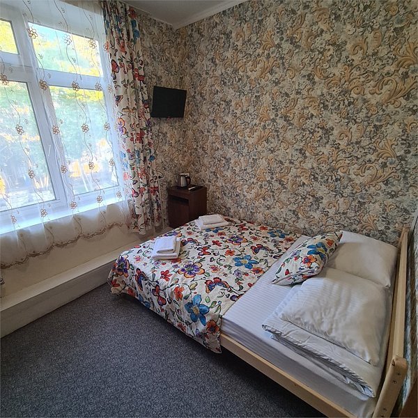 2х местный небольшой номер с удобствами с двуспальной кроватью.
