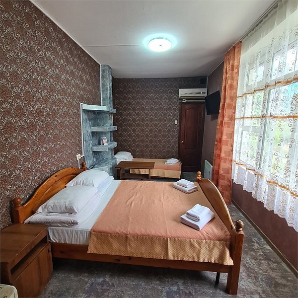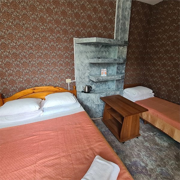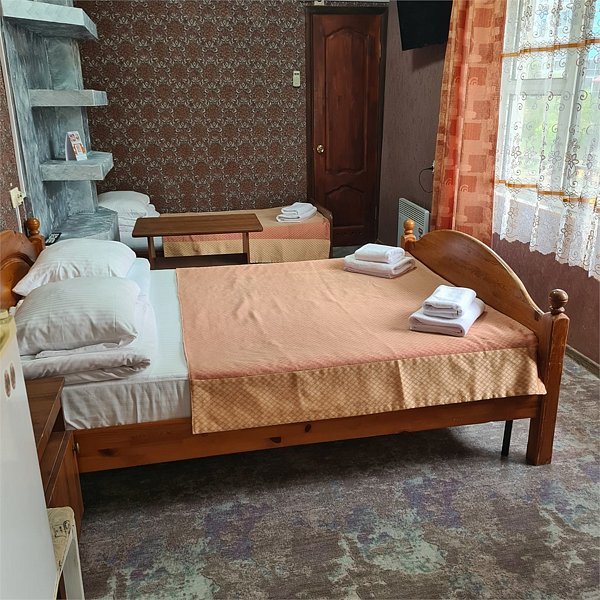 3х мест номер с удобствами. Вместимость до 3 мест. Один ребёнок до 5 лет — можно без отдельного спального места.
