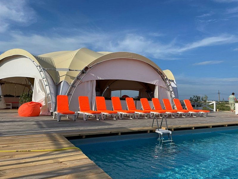 Глэмпинг Альфа Дом располагается на Бугазской Косе. Этот отель находится в 7 км от центра города. Рядом с отелем можно прогуляться. Неподалёку находятся Пляж Эдем, Пляж Пансионата Кассандра и Дикий Пляж на Бугазской Косе.