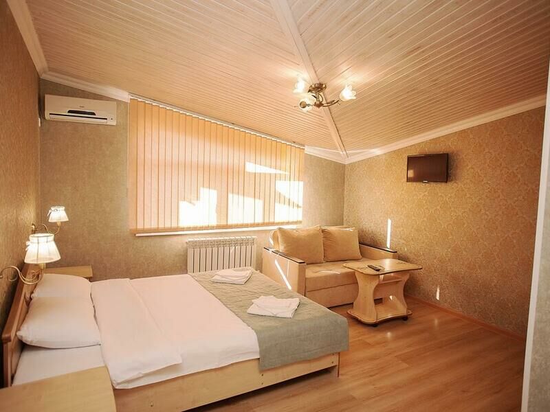 Трехэтажный жилой корпус с небольшим внутренним двориком предлагает гостям номера категории Люкс. Просторные и светлые комнаты оборудованы всем необходимым – в каждой есть кондиционер, телевизор, санузел с душем, в большинстве имеются балконы. Отдыхающие могут заказать комплексный завтрак, в доме есть оборудованная кухня, где гости смогут самостоятельно приготовить еду.