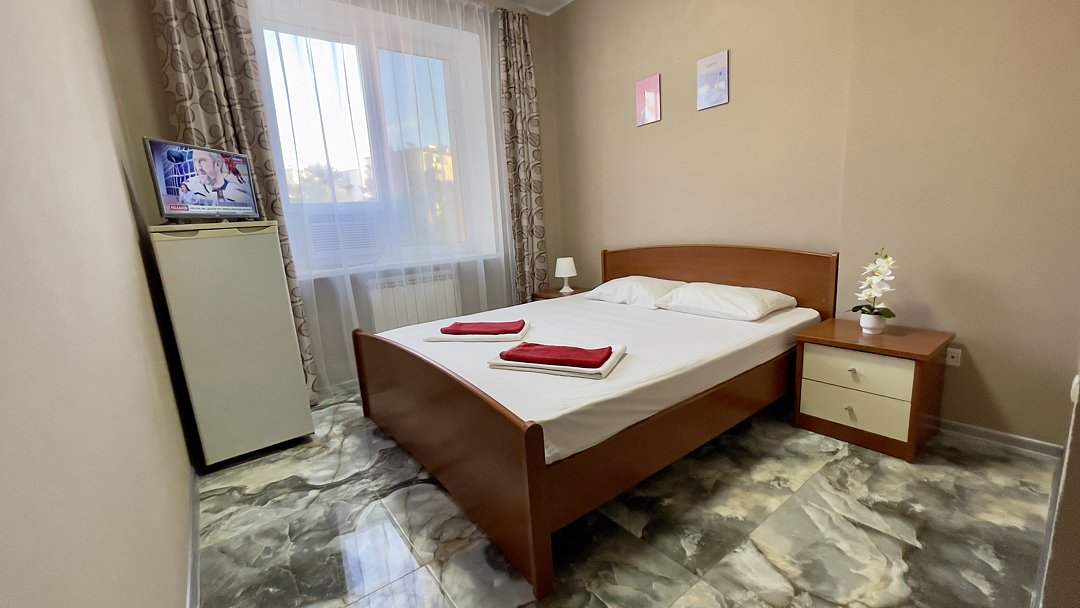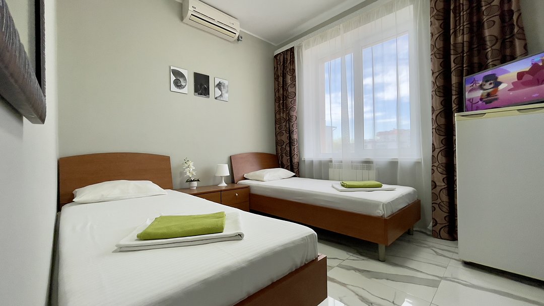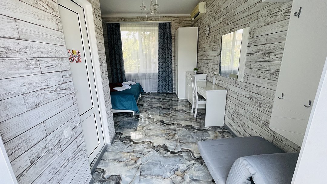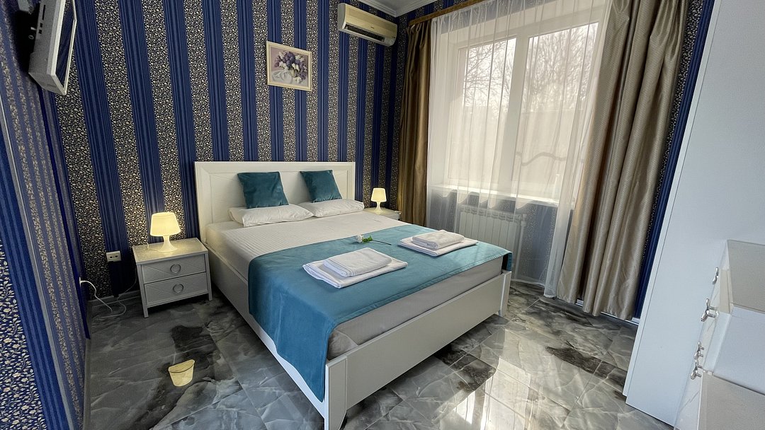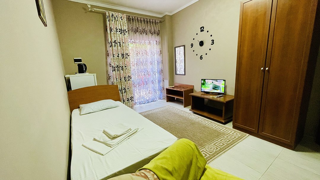 Гостевой дом находится в зеленом тихом квартале среди жилой застройки. В распоряжении гостей однокомнатные и двухкомнатные номера разных категорий. Везде предусмотрен санузел с душем, в комнатах – кондиционер, телевизор и мини-холодильник.
