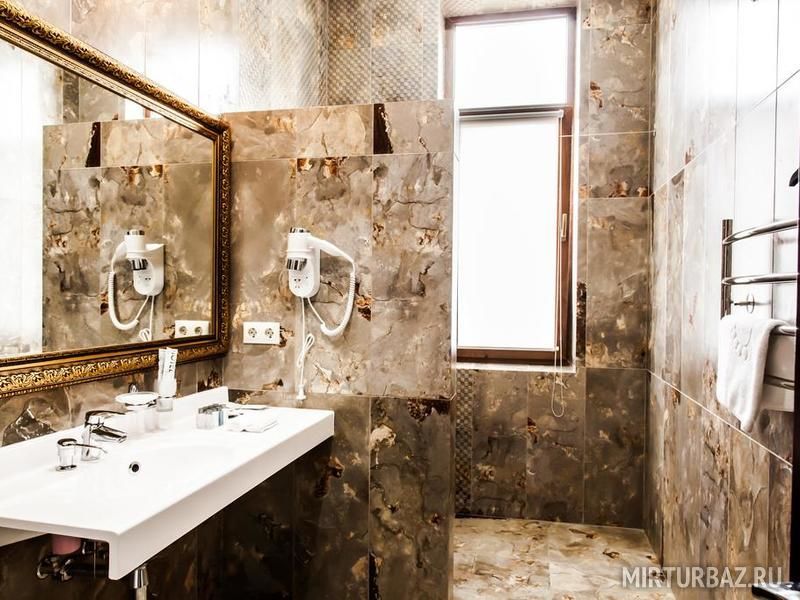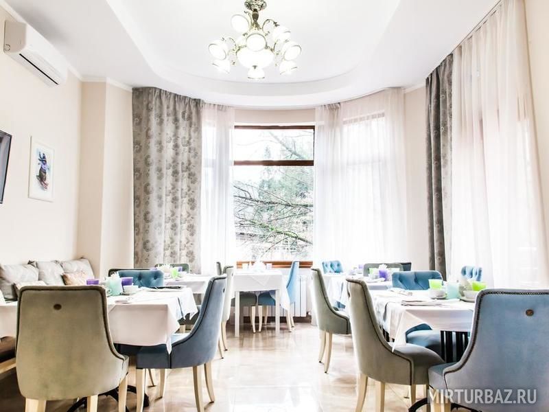 Небольшой двухэтажный корпус гостевого дома разместился на закрытой благоустроенной территории с внутренним двориком. Жилой фонд представлен 10 комфортабельными номерами с интересным дизайнерским решением. Гости могут выбрать как бюджетный вариант, так и разместиться в номерах улучшенной категории. Все номера оснащены индивидуальным санузлом с душевой кабиной или ванной, кондиционером и необходимой бытовой техникой. Из ряда комнат открываются живописные виды на гору Ачихшо и мыс Черную Пирамиду.